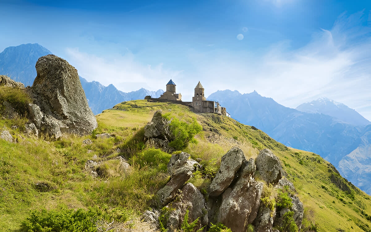 * 게르게티 트리니티 교회: 카즈베크 산의 멋진 전망을 제공하는 상징적인 언덕 꼭대기 교회를 방문하세요.
