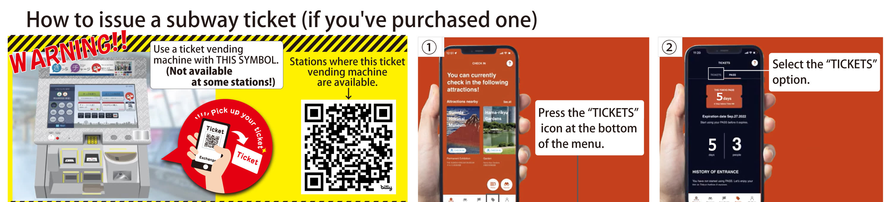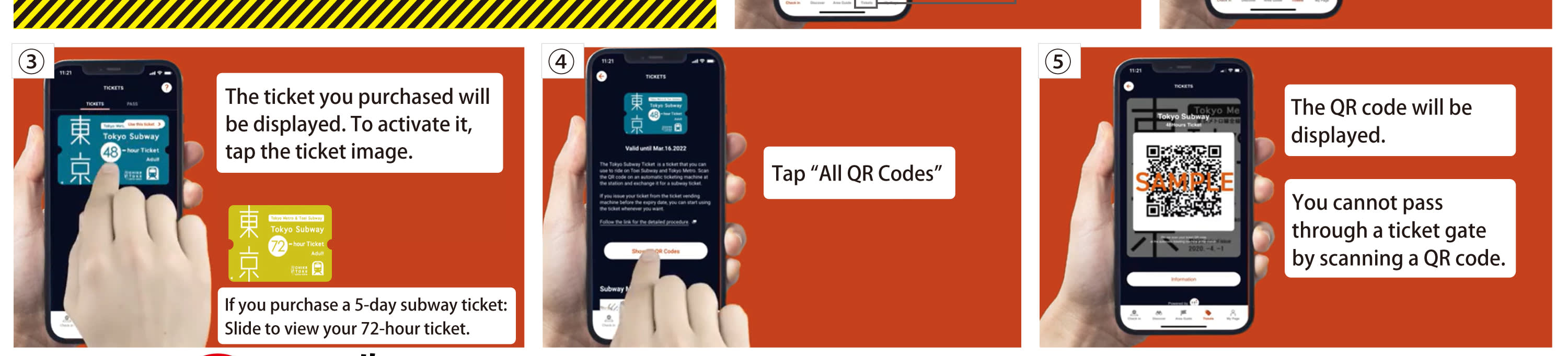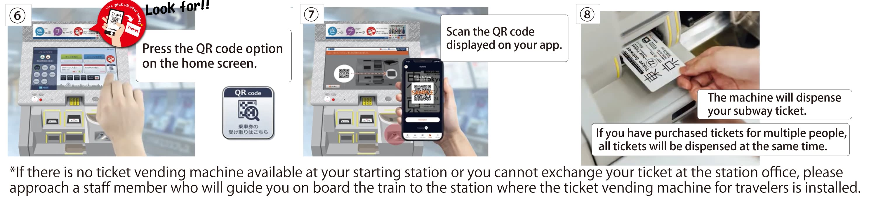 * 도쿄 지하철 티켓을 구매한 경우, 지하철역의 티켓 자동판매기에서 QR 코드를 스캔하여 실물 티켓을 발급받으세요. 자세한 안내 영상은 를 클릭하세요.