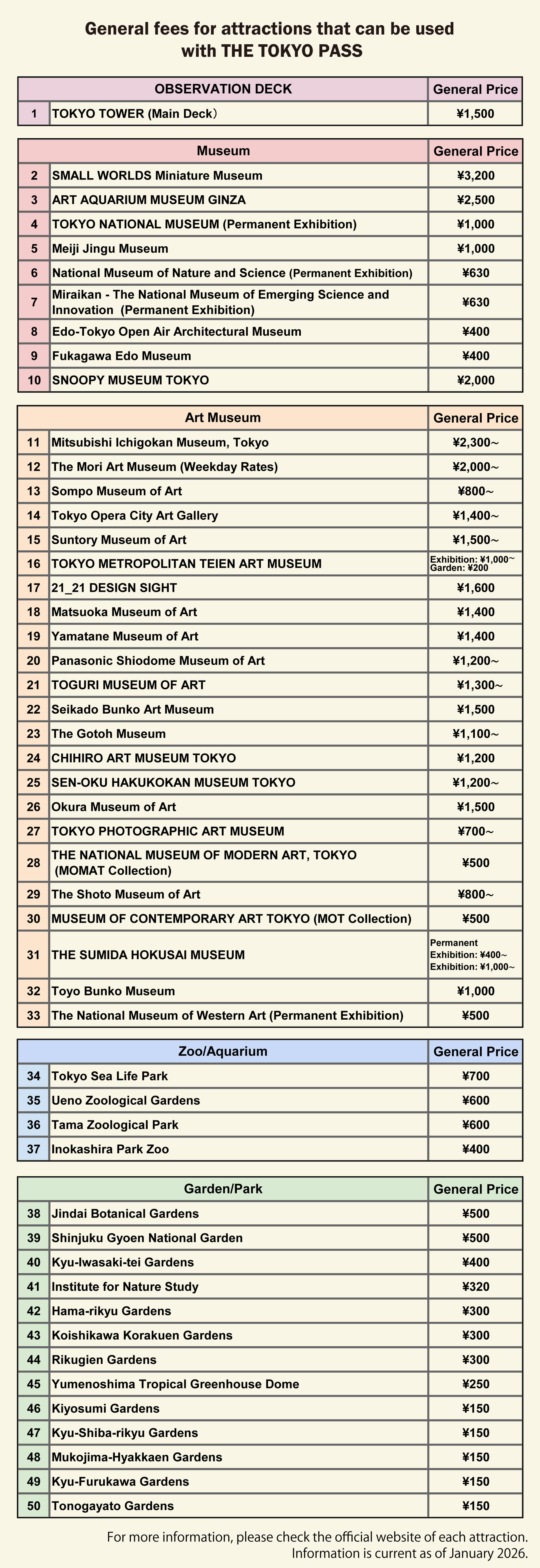 * (3)THE TOKYO PASS는 성인 요금으로만 이용 가능합니다.