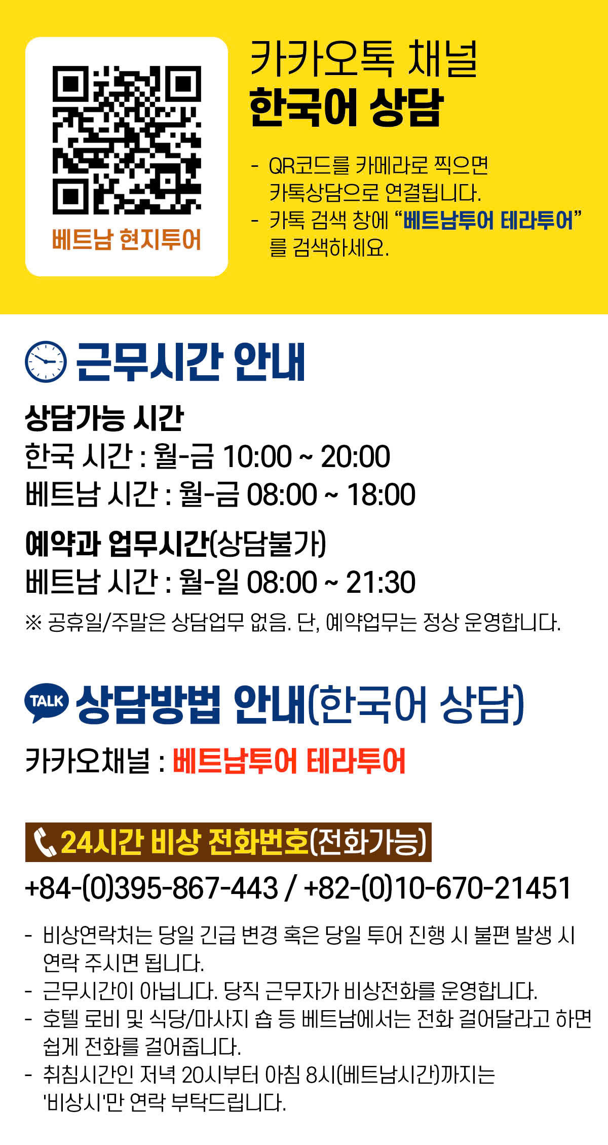 ★ 24시간 비상전화번호(전화가능) +84-(0)395-867-443 / +82-(0)10-670-21451