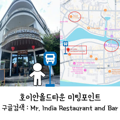 ⛔ 호이안 올드타운 픽업 / 하차장소 : Mr. India Restaurant and Bar 앞 (https://maps.app.goo.gl/YCdDoQuiNh6kbXq19 )
