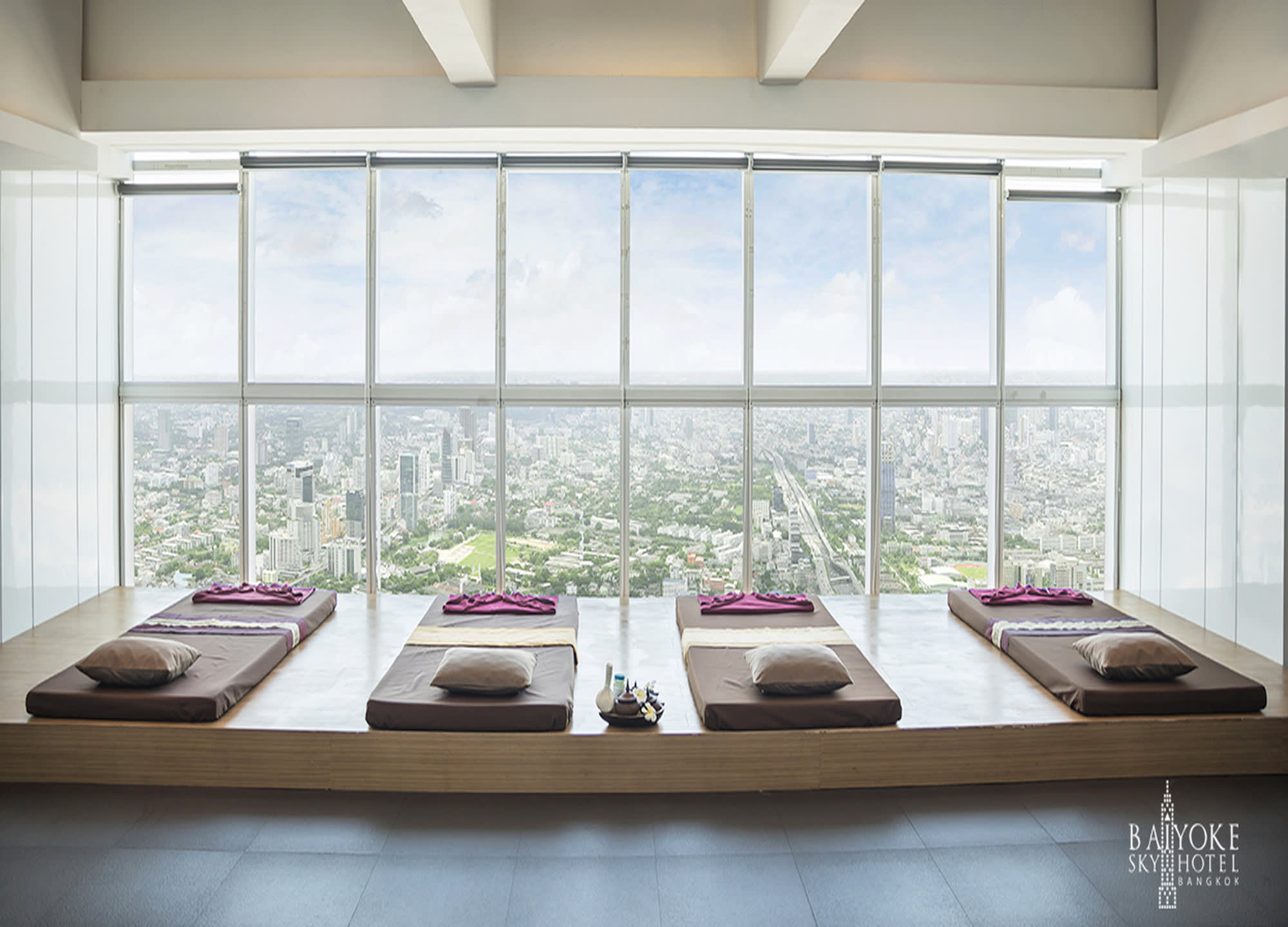 숨 막힐 만큼 아름다운 방콕 시내 스카이라인을 감상하며 마사지를 즐길 수 있는 바이욕 스카이 호텔 스카이 릴렉스 스파입니다.