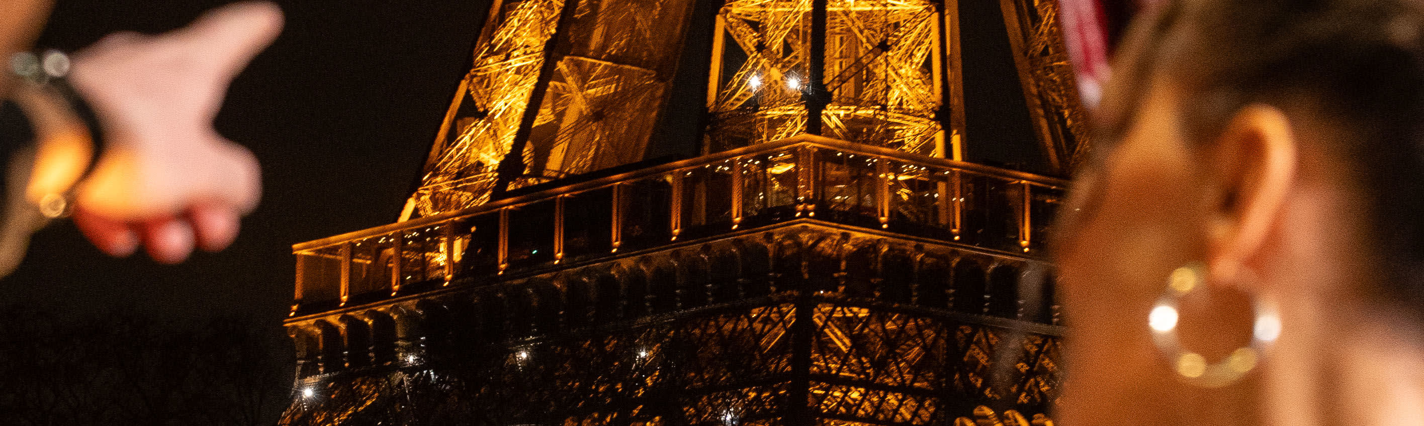 * 조명이 켜진 에펠탑 등 파리의 상징적인 랜드마크의 숨막힐 듯한 전경