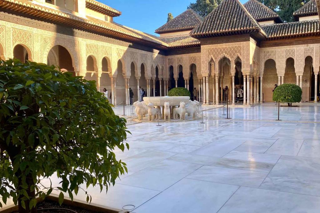 대리석 기둥 사이를 걸으며 사자 궁전의 예술적 아름다움을 발견해 보세요. 파란색과 노란색 타일로 장식된 상징적인 이슬람 장식으로 유명한 이 법원은 이슬람 건축과 공학의 인상적인 예입니다.