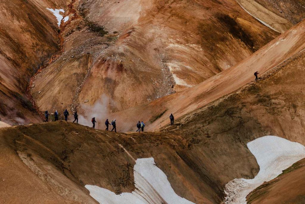 당일 일정, 조건, 날씨, 적절한 복장에 대한 브리핑으로 하루를 시작합니다. 다음으로 차량으로 Hveradalir 주차장으로 이동합니다. Mænisjökull 방향으로 등반해 Hverabotn의 최고점에 도착하면 작은 폐쇄형 계곡의 장엄한 전망을 감상할 수 있습니다.
