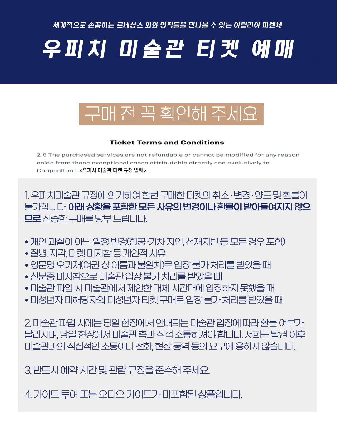 ☑︎ 티켓 및 미술관 입장 관련 유의사항 한글 번역본 제공