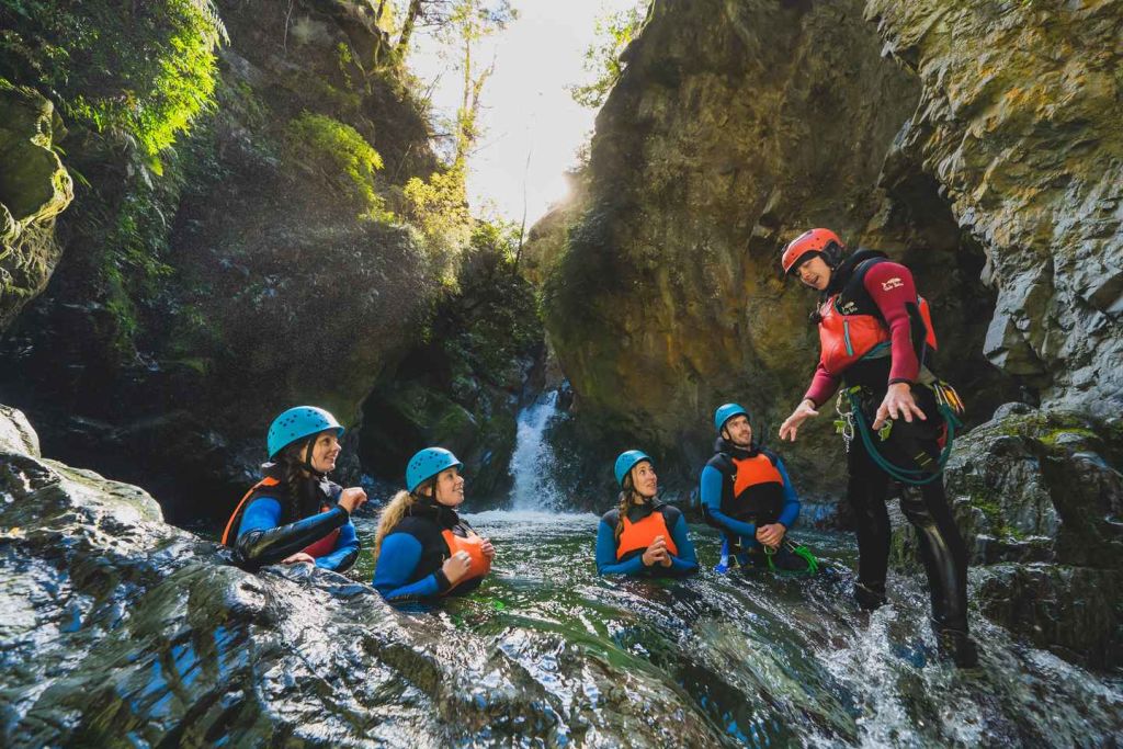 여행은 퀸스타운의 어드벤처 센터에서 시작되며, 출발 라운지에서 가이드를 만나게 됩니다. 이곳에서 가이드가 여행 전 안전 정보를 공유하고 여행에 대한 적합성을 확인합니다. 여행 출발 전에 의료, 건강 또는 기타 안전 관련 정보를 알려주시기 바랍니다. 그런 다음 차로 10분 거리에 있는 기지로 이동해 캐녀닝 장비를 착용합니다.