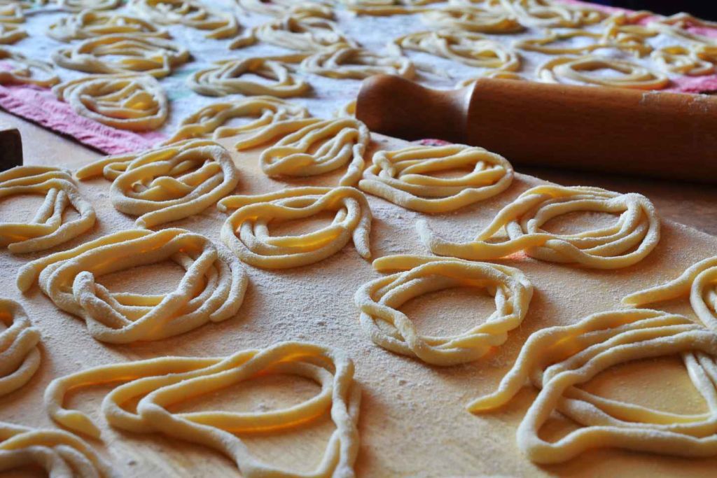 피치와 전형적인 토스카나식 신선한 파스타를 직접 만드는 코스