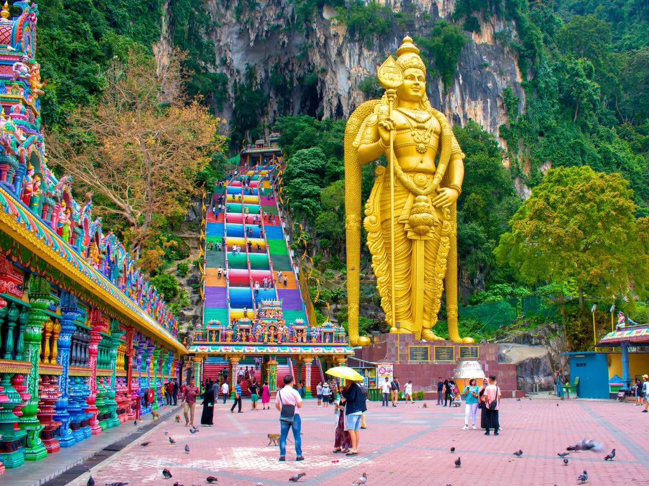 * 우뚝 솟은 황금빛 무루간 신상 옆으로 다채로운 계단을 올라보세요.