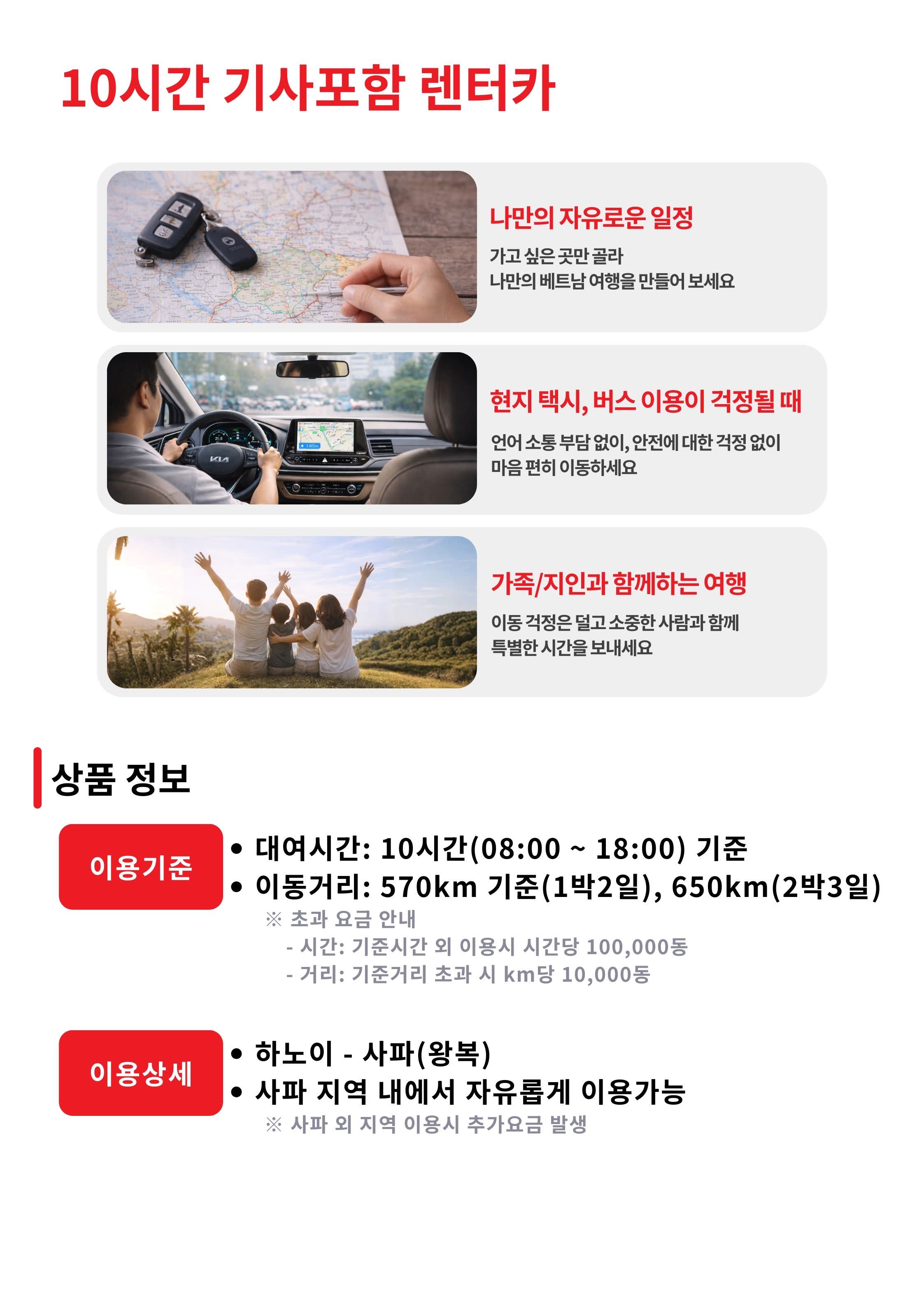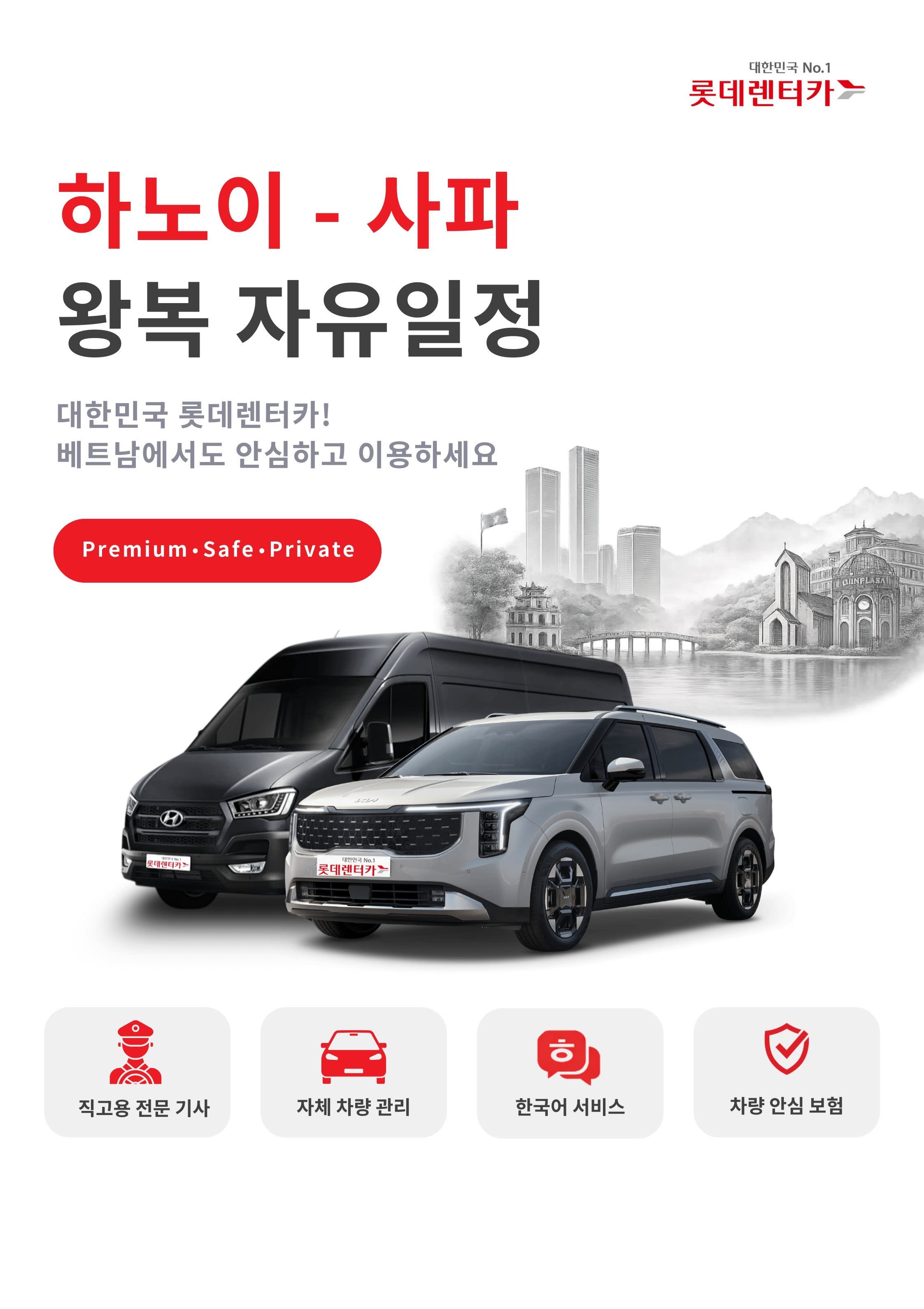 [롯데렌터카] 하노이 - 사파 왕복 자유일정 기사포함 렌터카
