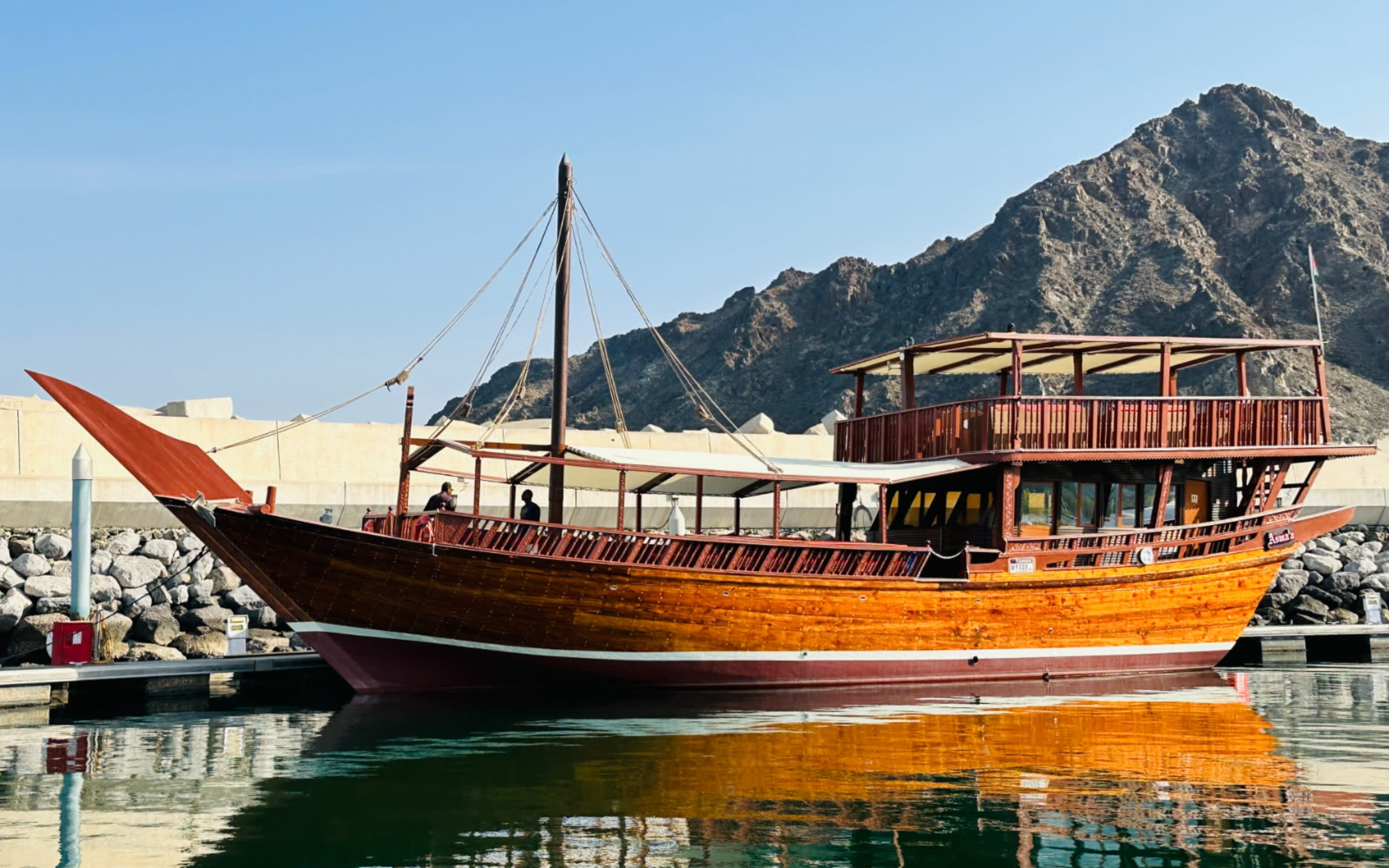 * 유산, 해안의 아름다움, 고요한 황혼을 보여주는 전통 오만 돛단배 크루즈를 경험하세요.