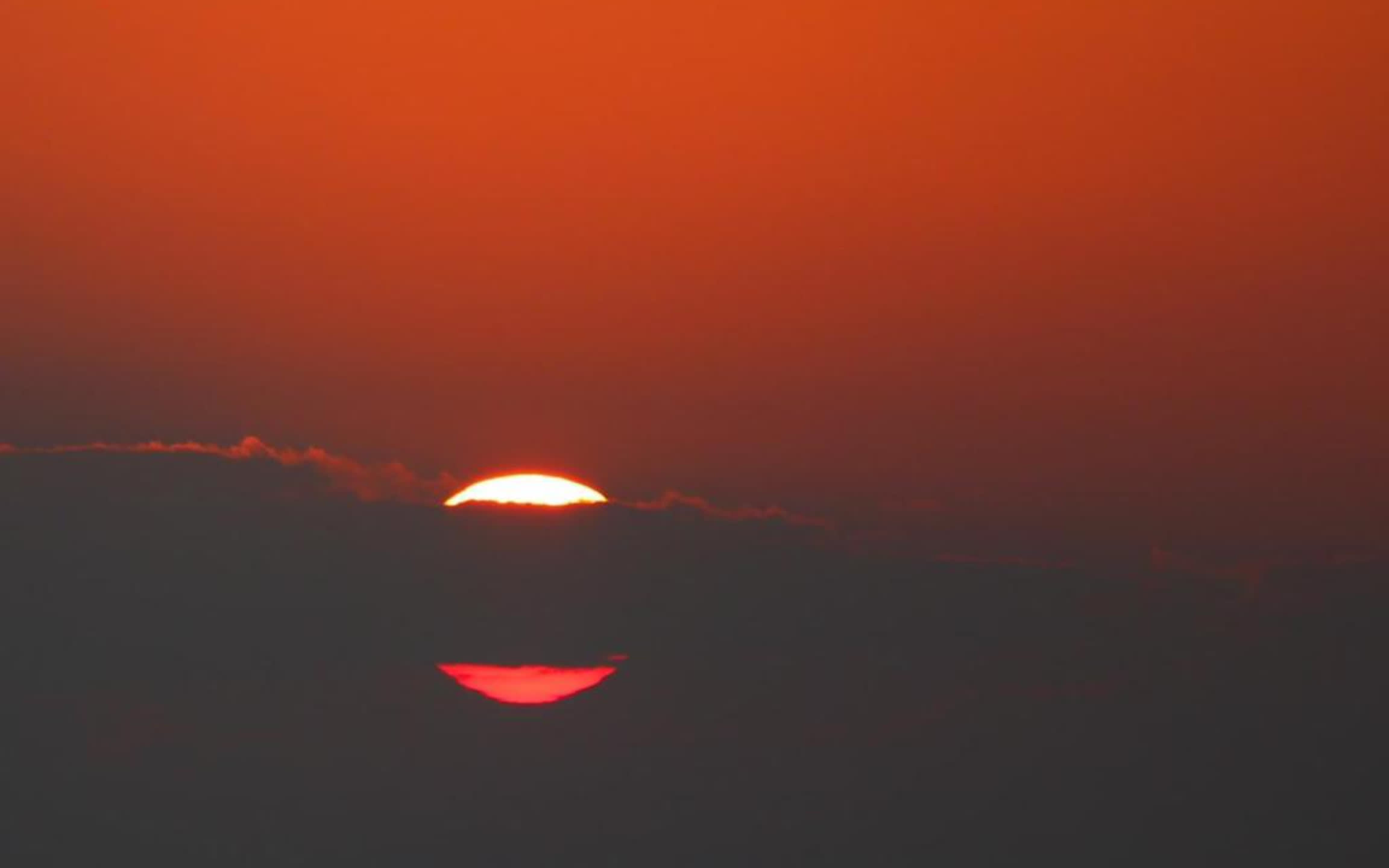 * 고요한 바다 수평선에 생생한 색을 입히는 숨 막히는 아라비아 일몰을 감상하세요.