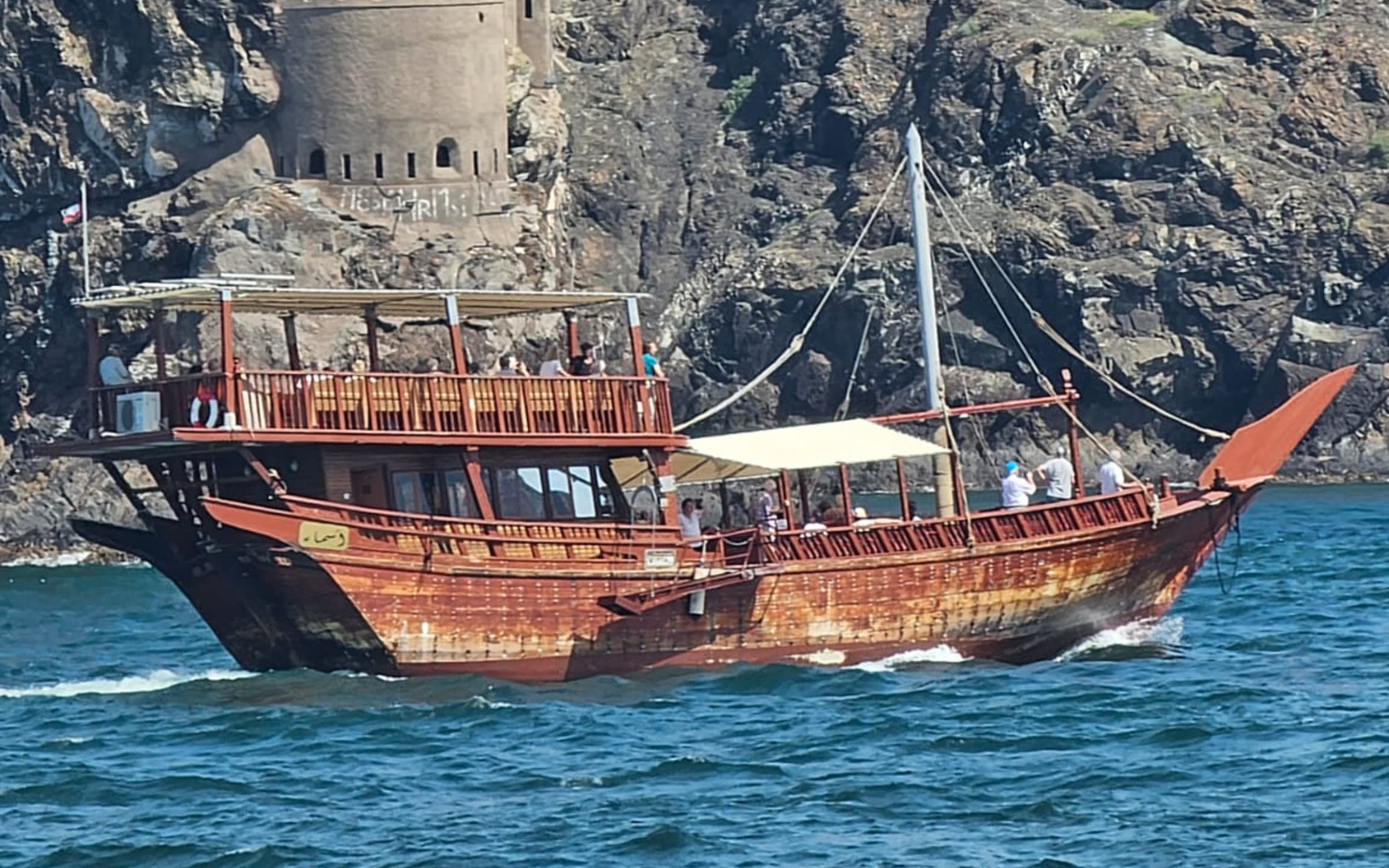 무스카트 오만 전통 배(도우) 일몰 크루즈 체험
