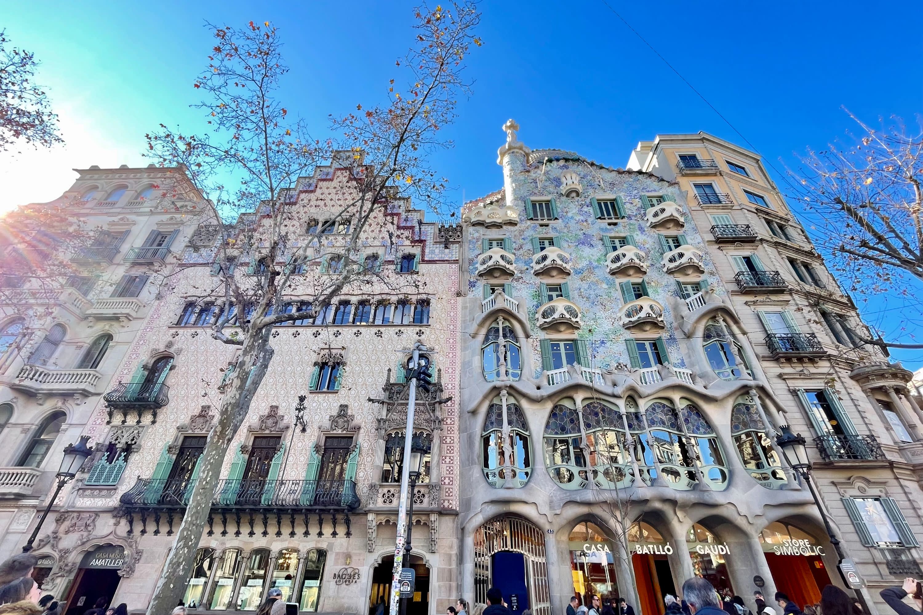 * 독특한 뼈대 구조와 생동감 넘치는 세라믹 타일로 유명한 까사 바뜨요의 인상적인 외관을 감상하기 위해 잠시 멈춰보세요.