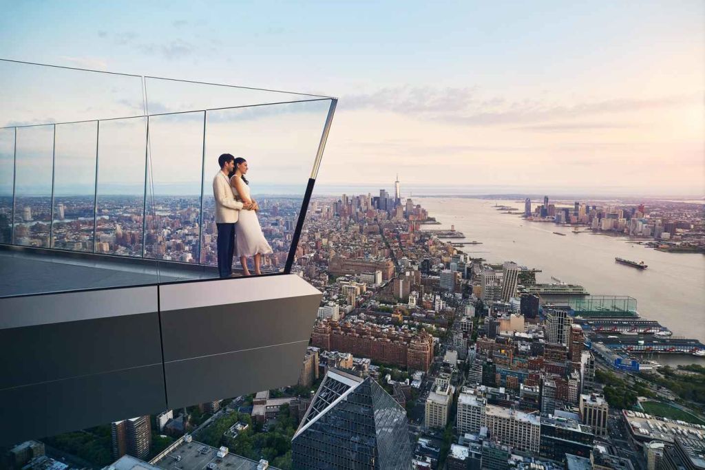 지상 335m 높이의 공중에 떠 있는 건축, 공학, 기술의 경이로움인 엣지 입장권을 구매하세요. 하늘에 떠 있는 듯한 기분을 느끼며 미드타운 맨해튼 서쪽에 위치한 에지의 독특한 관측 장소에서 맨해튼 스카이라인을 감상하세요.