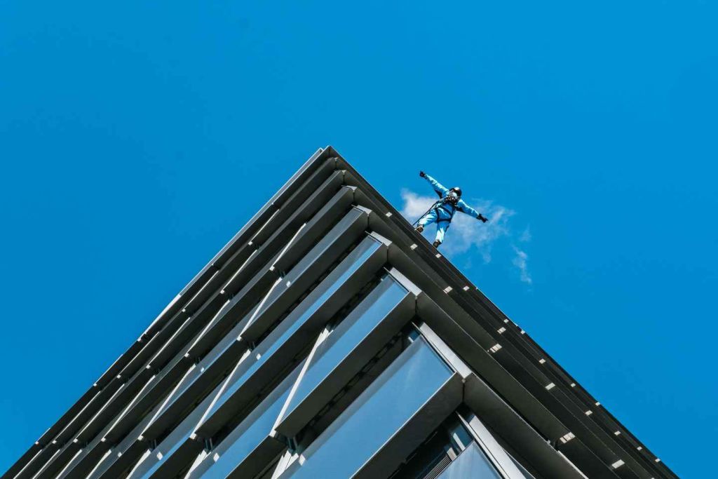 각진 유리 벽에 기대어 도시를 내려다보며 하늘에서 샴페인을 마셔보세요.