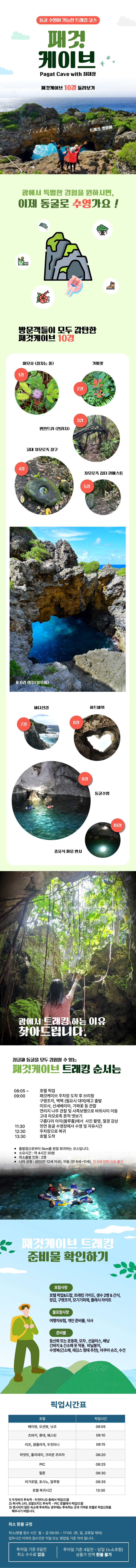 마지막으로 천연동굴에서 수영을 즐기면서 자유시간을 즐긴 후 출발점으로 돌아오는 트레킹코스입니다.