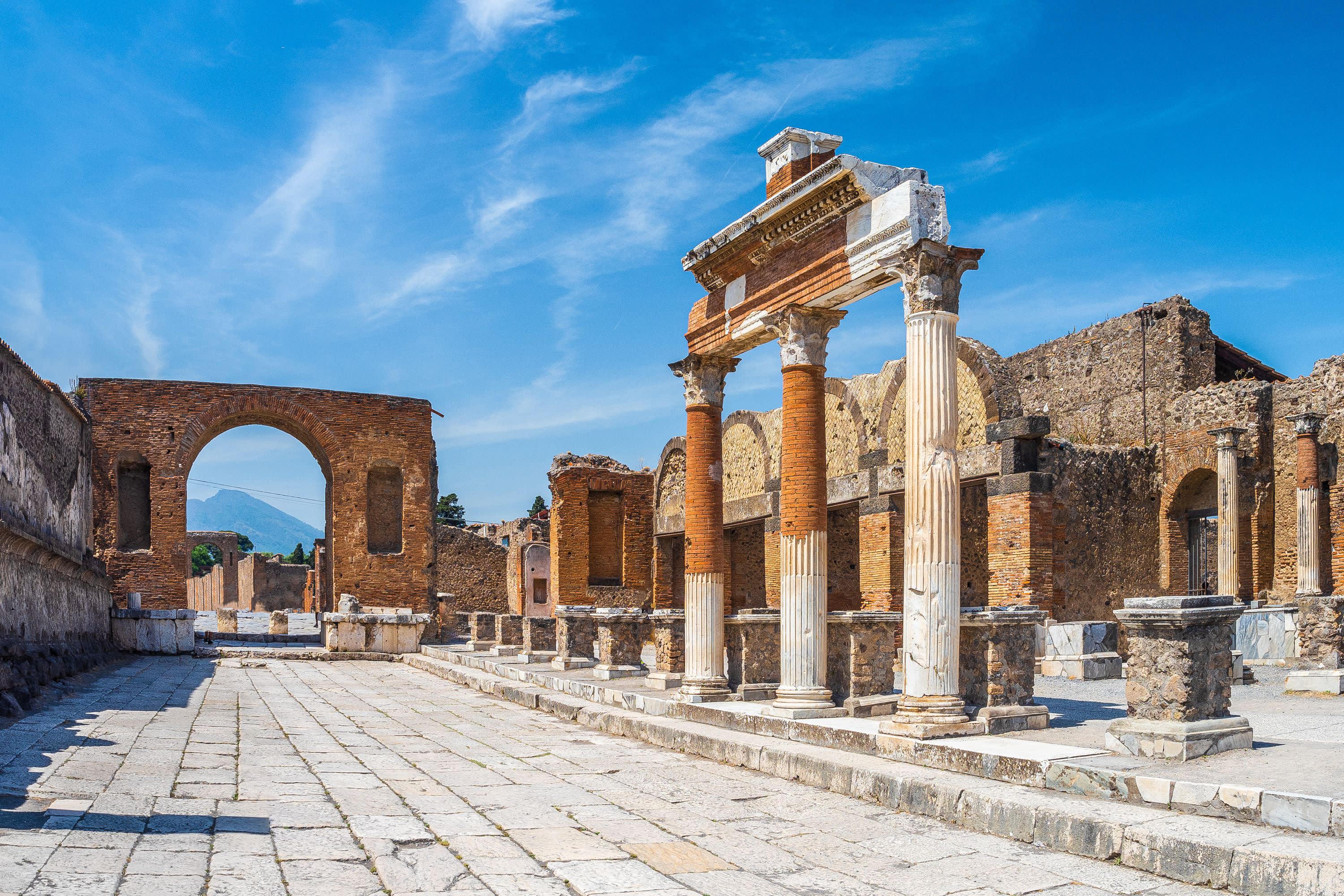 * 폼페이의 고대 거리와 보존이 잘 된 유적지를 탐험하며 기원전 79년 베수비오산 폭발로 시간이 멈춘 듯한 일상을 엿보세요.