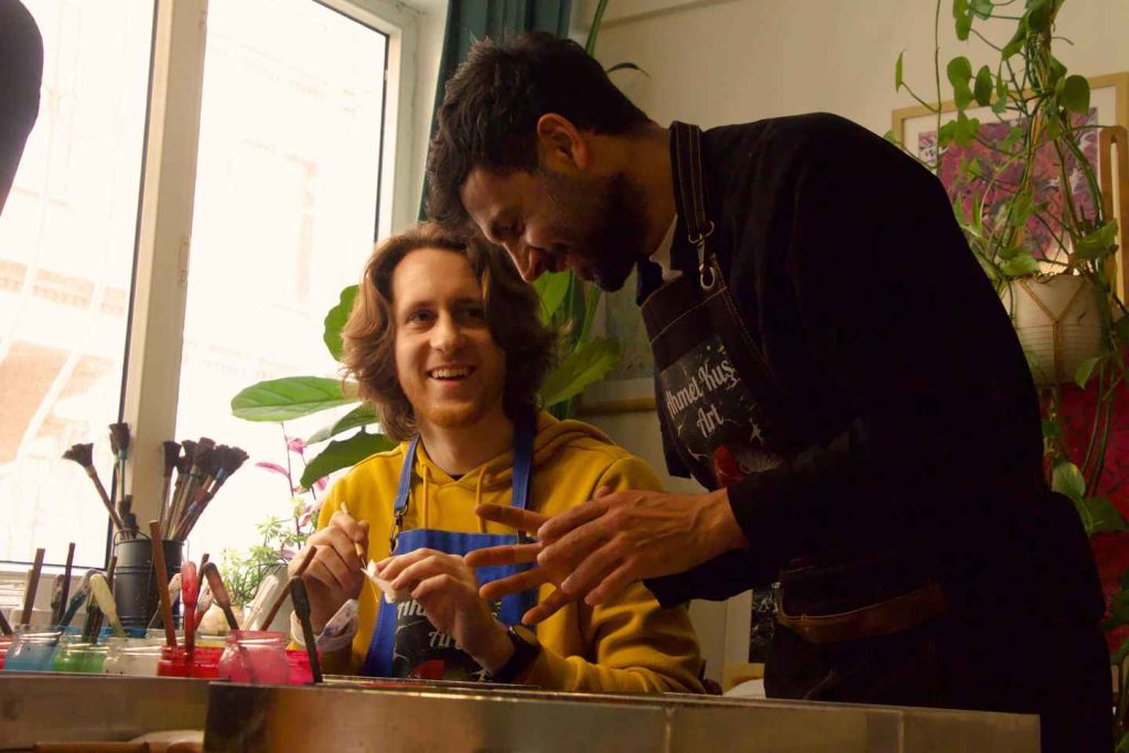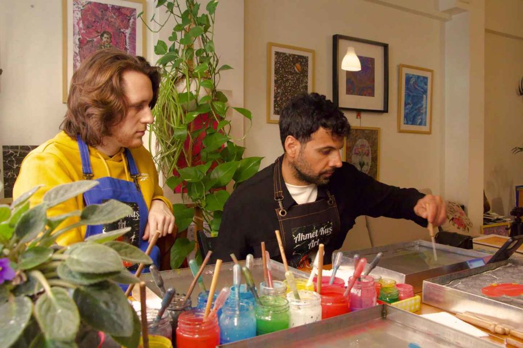 아흐메트의 따뜻한 안내로, 자연 색소를 사용해 물 위에 섬세한 패턴을 그리는 방법을 배우고, 단 한 번의 만족스러운 담그기로 디자인을 종이에 옮기는 과정을 체험할 수 있습니다. 이는 붓 없이 그림을 그리는 것과 같으며, 각 작품은 테이블 주변의 사람들처럼 유일무이합니다. 차를 마시며 이야기를 나누고, 터키의 환대를 느끼며 실습을 즐길 수 있습니다.