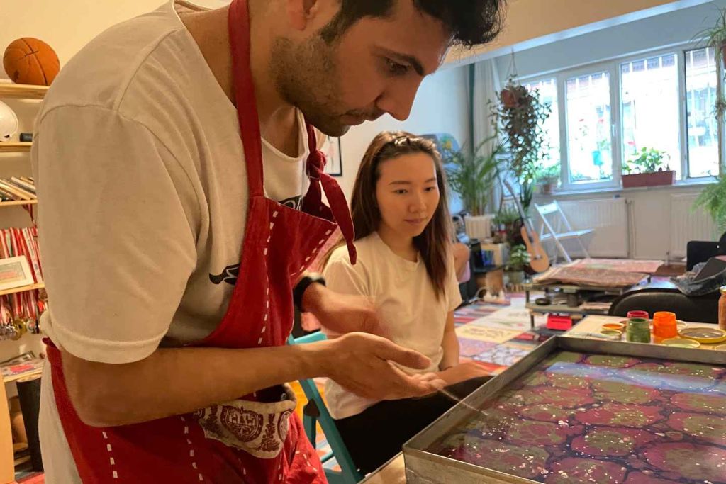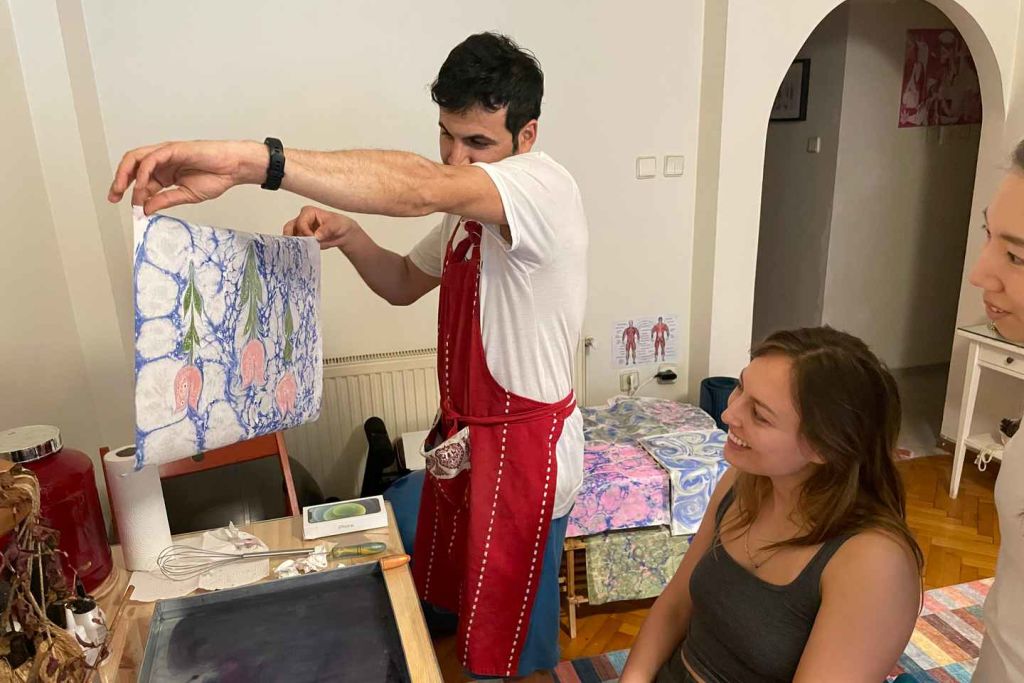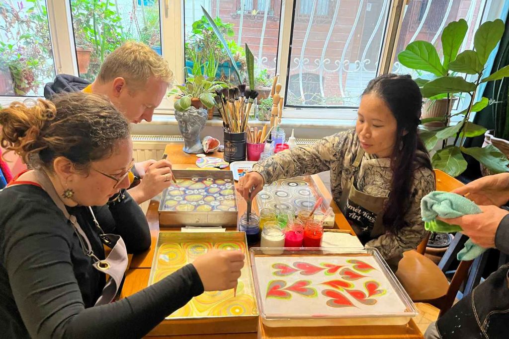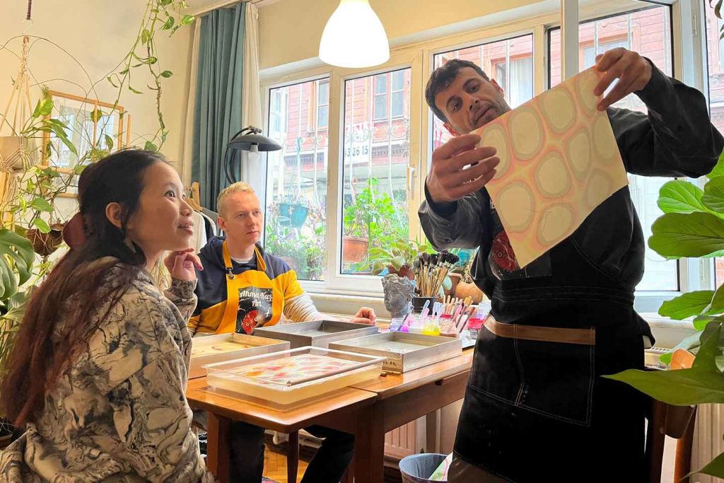 현지 예술가로부터 오스만 제국의 전통 예술인 에브루(마블링)를 배워보세요.
