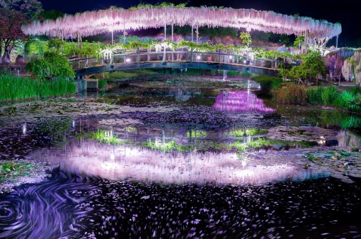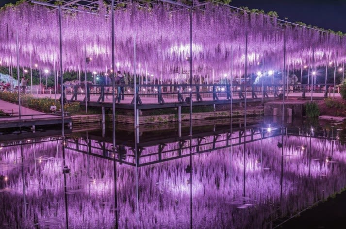 등나무 이야기 - 아다치 꽃공원의 야경 등나무꽃과 이바라키 나비꽃밭 당일치기 여행 | 도쿄 출발