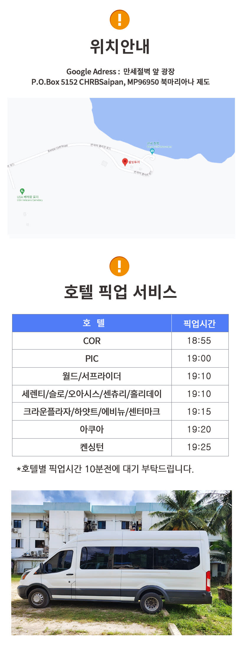 📢 [안내 사항] - 픽업 시 호텔 로비에서 고객님 성명을 호명해요. - 꼭 미팅 시간 10분 전 대기를 부탁드립니다. - 예약 확정 바우처를 받기 전까지는 예약 확정이 아닙니다. - 노쇼 및 지각으로 인한 변경 및 환불이 불가합니다. 👜 [준비물] 편한 복장, 카메라 등 개인 물품