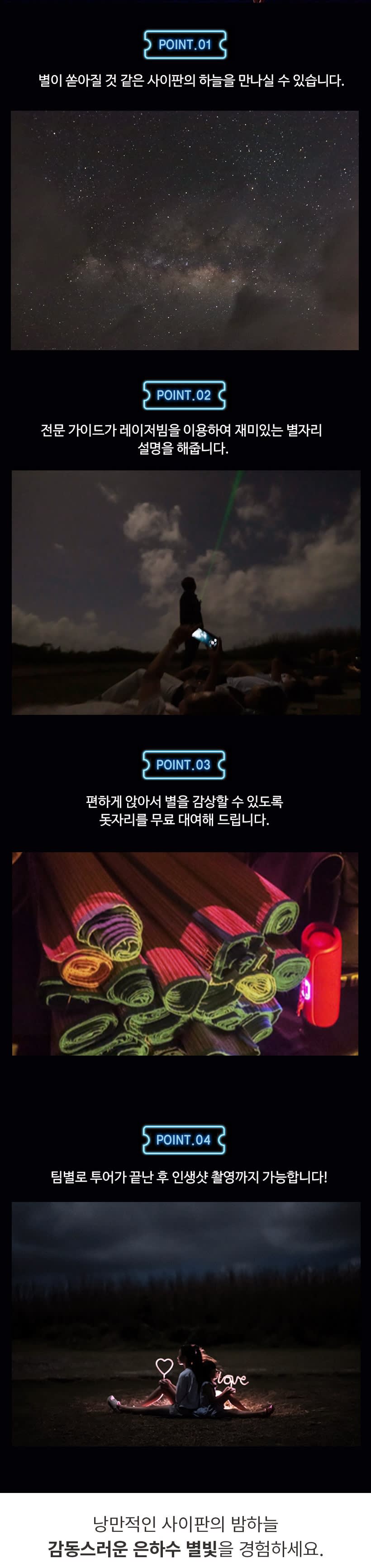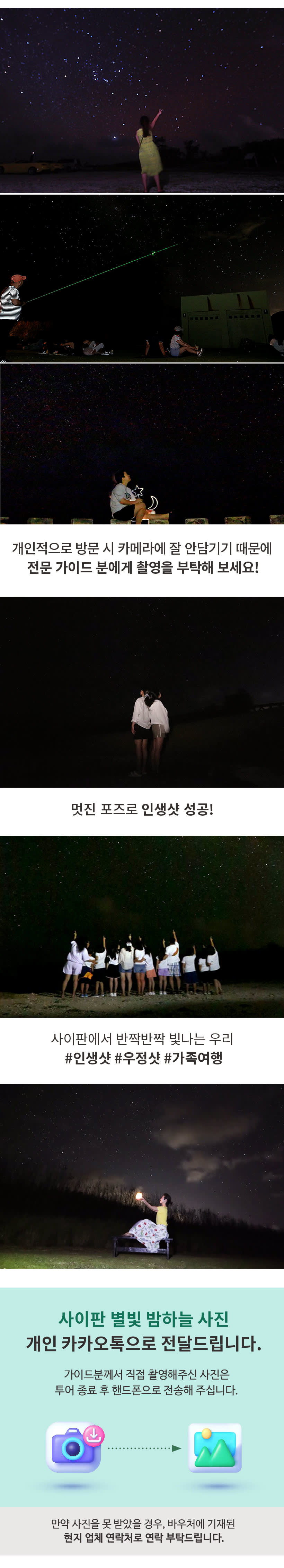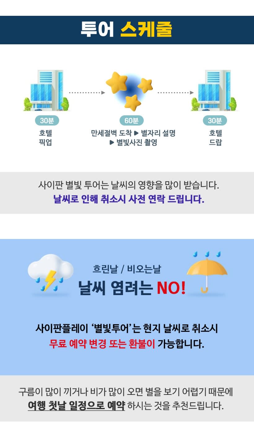 - 별빛 투어는 최대한 여행 앞쪽 날짜로 예약을 하시는 것이 좋습니다.