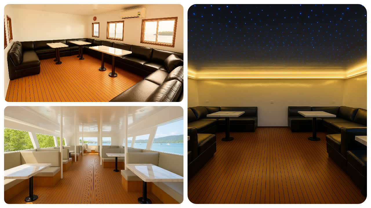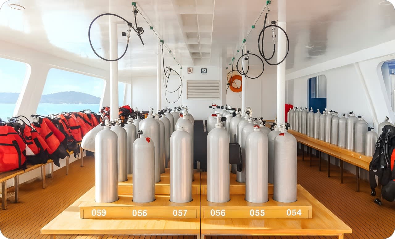 * 쾌적한 에어컨 라운지: 다이빙 전후에 보트의 에어컨 라운지에서 휴식을 취하며 더욱 즐거운 여행을 만드세요.