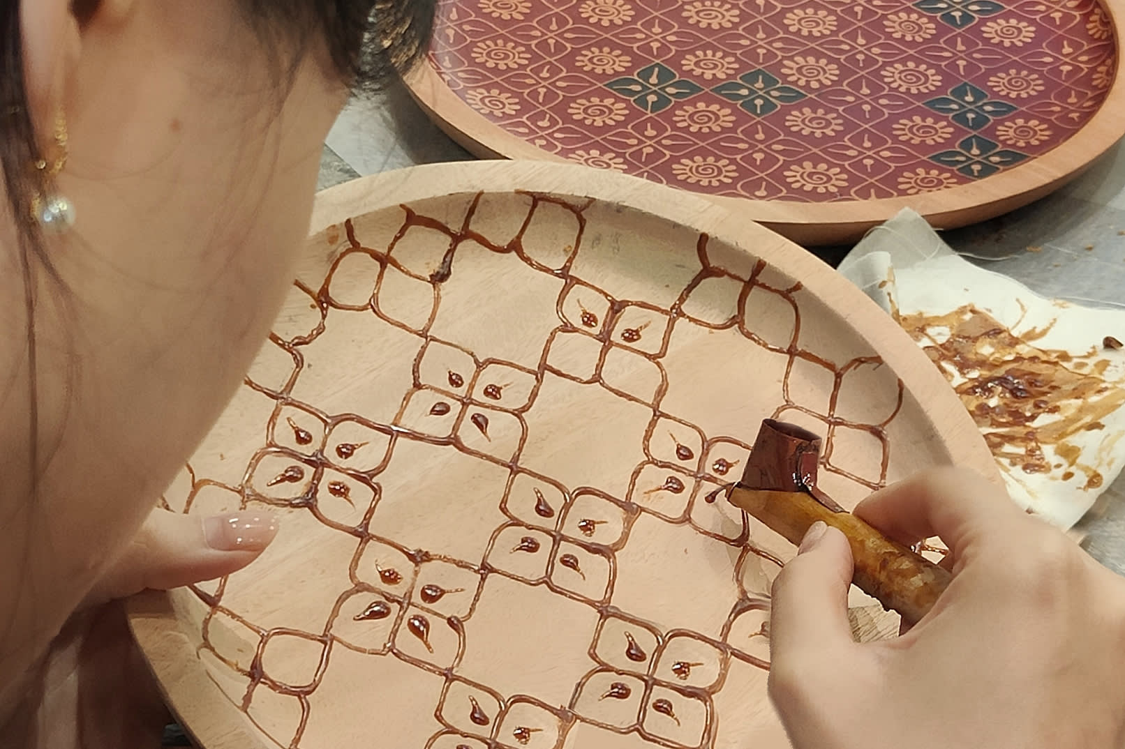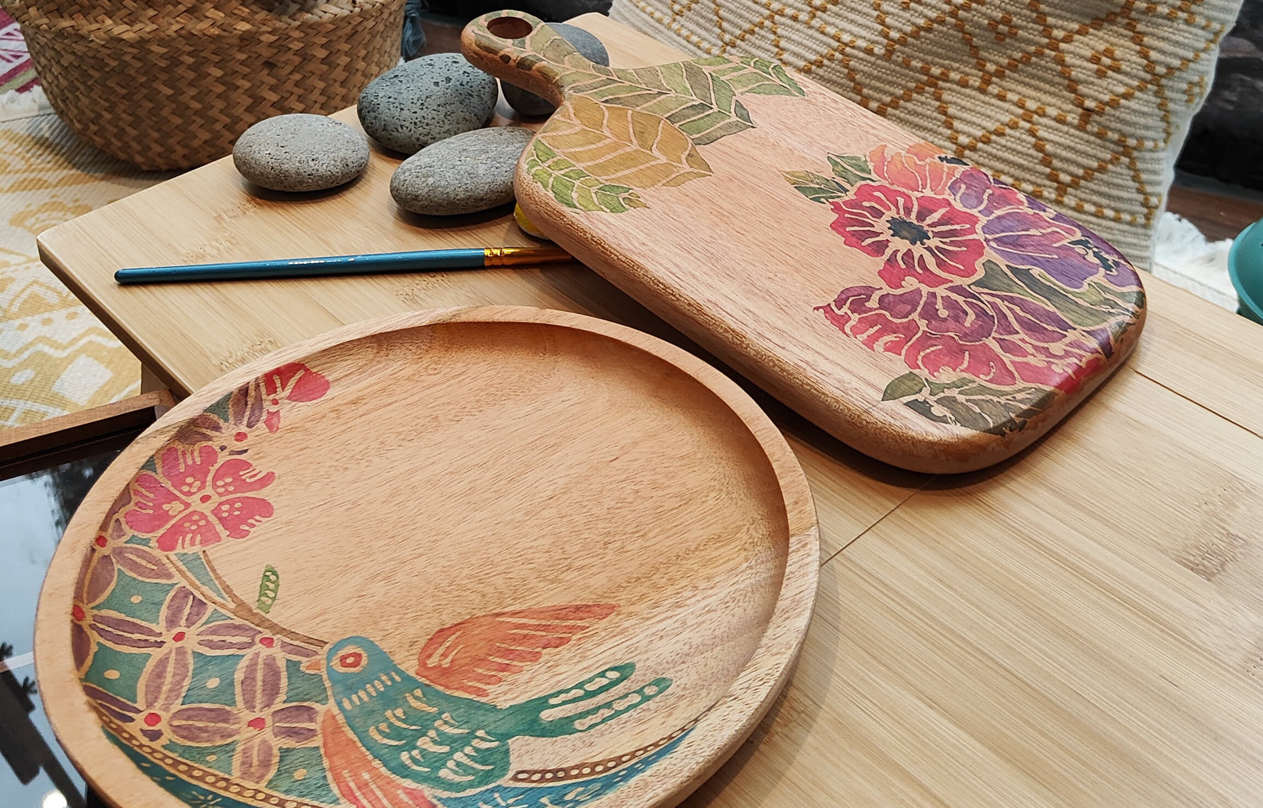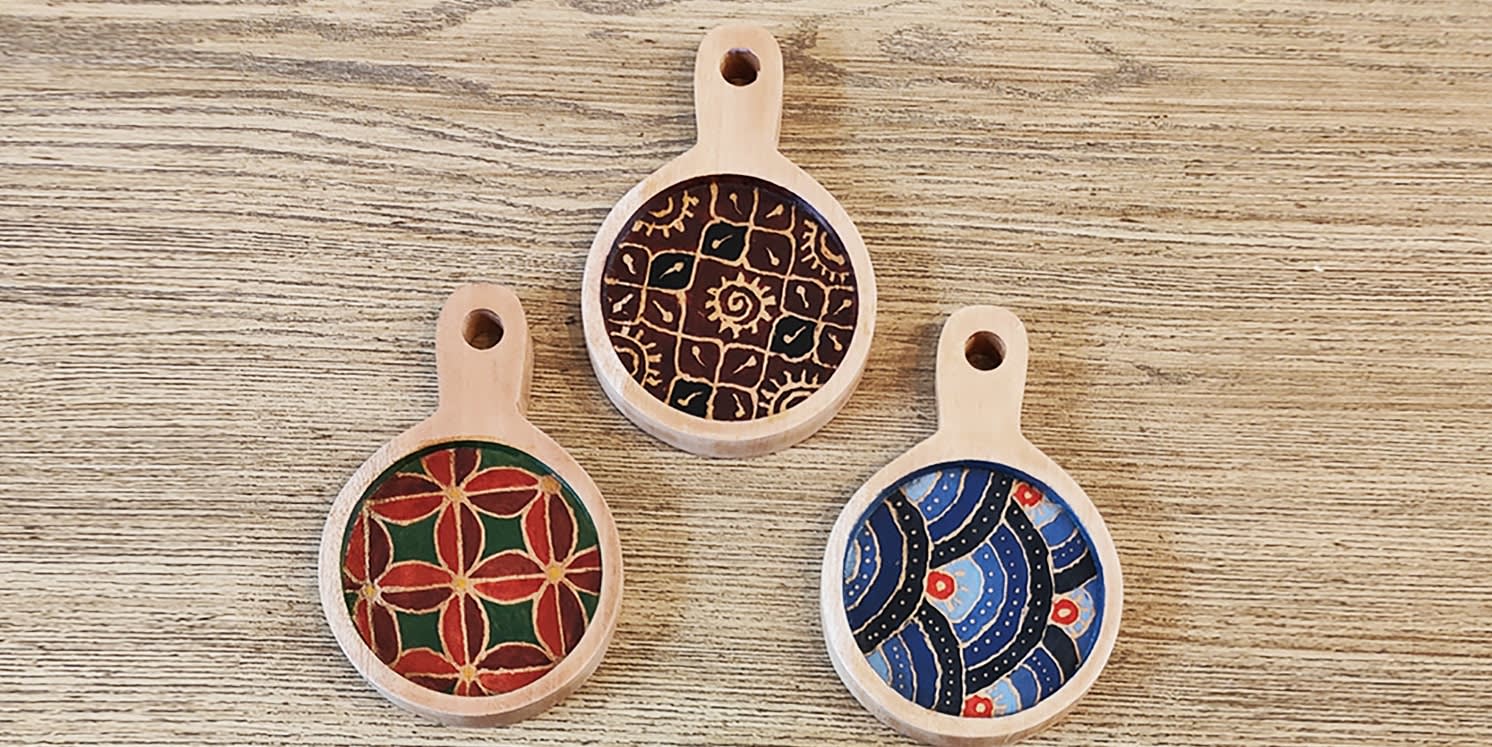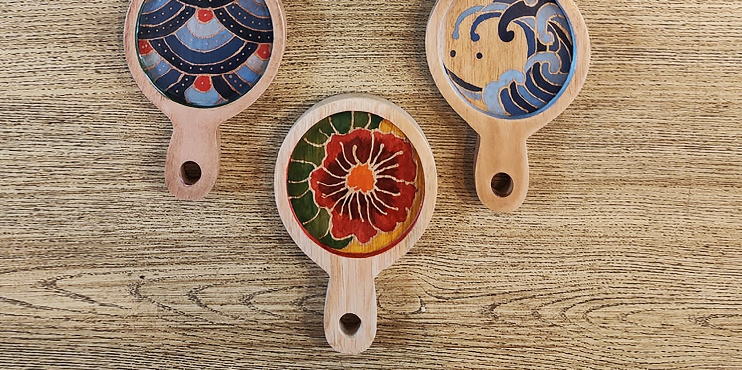 * 뜨거운 왁스와 염료를 사용하여 나무에 전통 바틱 기술을 배워보세요.