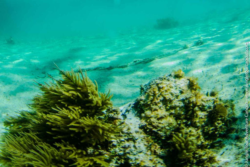가이드가 가장 흥미로운 동식물을 가리키는 대로 맹그로브 정글을 탐험하며 이 독특한 지역의 모든 것을 발견할 수 있습니다. 약 35분 후 푼타 니주크의 마야 산호초에 도착합니다.