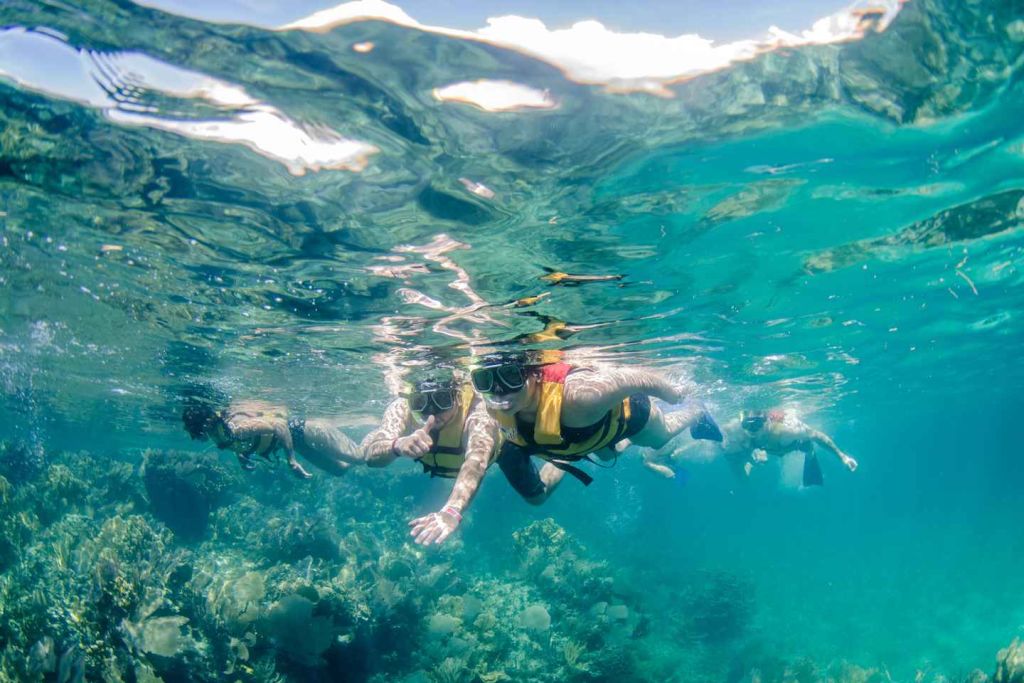 푼타 니주크 국립공원 산호초 주변의 청록색 바다에서 스노클링하기
