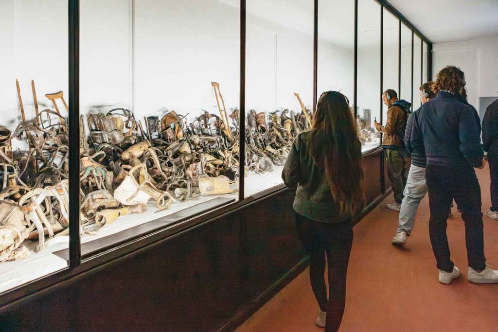 100만 명 이상이 목숨을 잃은 거대한 집단 학살 수용소인 아우슈비츠 II-비르케나우로 이동합니다. 가스실과 화장터의 잔해를 보고 잔학 행위의 규모를 목격할 수 있습니다. 가이드가 나치의 '최종 해결책'에서 이 수용소가 어떤 역할을 했는지 설명하고, 기념 장소에서 묵념의 시간을 갖게 됩니다.