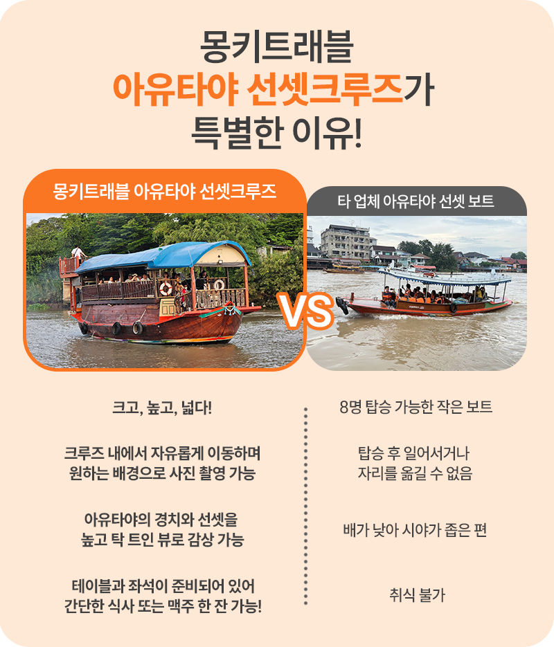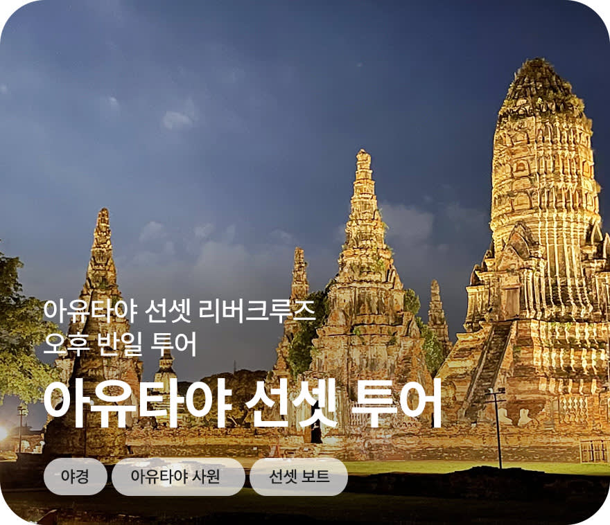 아유타야 대표 관광지를 둘러보고, 크루즈에 탑승하여 아유타야 선셋을 감상합니다.
