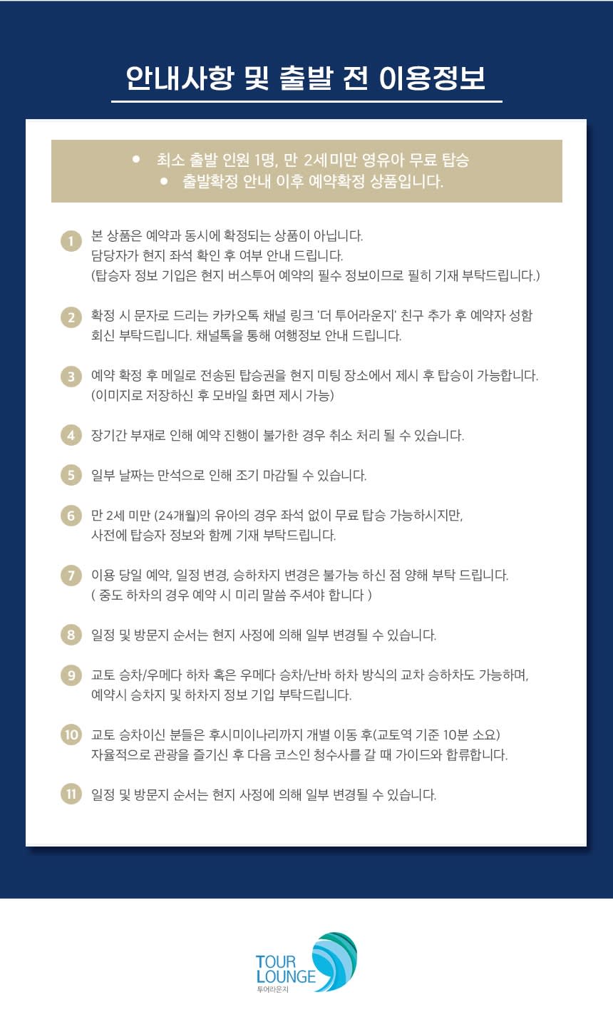 ※ 직전예약, 문의사항, 탑승지 변경 등은 아래 더투어라운지 카카오톡 링크를 통해 메세지 주시면 빠른 응대가 가능합니다.