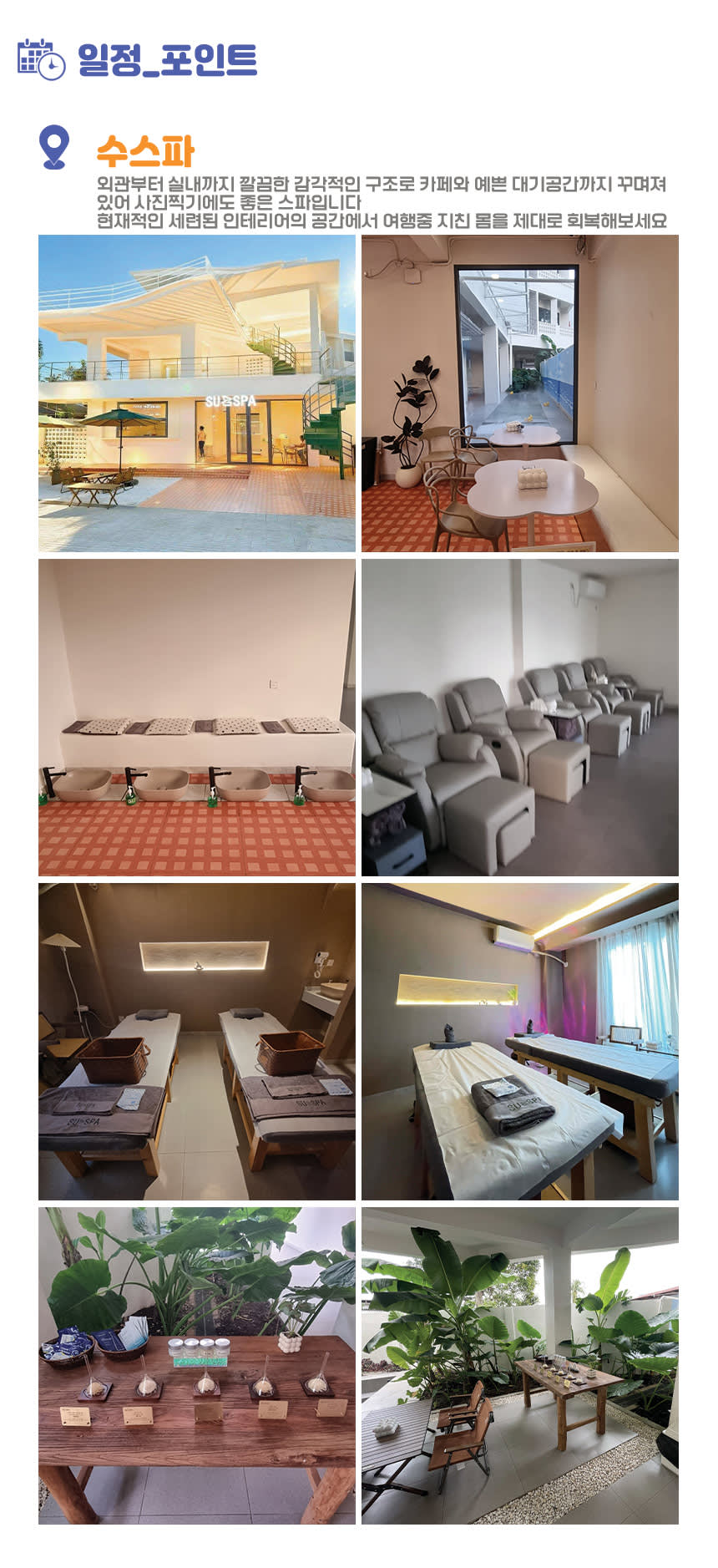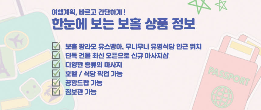 [마사지 주의사항] - 유아 동반이 가능하며, 사전에 미리 알려주시기 바랍니다 - 아동은 보호자와 한방으로 이용되십니다. - 스타인월드 당사의 개별연락 (카톡) 확정 안내 없이 마사시샵 직접연락 및 방문시 예약 확인 및 확정이 불가능 할 수 있습니다. - 개별이동 시 예약시간에 맞춰 방문바라며, 30분 이상 도착지연 시 노쇼 처리됩니다. - 샤워 시설이 있어 간단한 물샤워로 가능합니다. - 마사지 강약 조절 시 한국말로 테라피스트에게 "살살" / "쎄게"라고 말씀해주시면 됩니다. * 추가금액 발생시 예약정리시 별도 안내 드립니다 * 천재지변으로 인해 행사가 불가할 수 있으며, 행사 진행 불가 시 개별 안내 드립니다 * 천재지변등의 이유로 시간단축 또는 일정변경시 부분환불이 되지 않습니다 * 픽업은 안내드린 픽업시간 및 장소에 계시지 않거나 5분 이상 늦는 경우 상품 이용이 어렵습니다 * 귀중품은 본인이 보관하시거나 분실에 주의하세요 * 여행자 보험은 개별적으로 반드시 가입하여 주시길 바랍니다 * 본인 건강이 원인인 사고와 (기왕증 등) 본인의 과실로 인해 발생된 사고는 당사가 책임지지 않습니다 * 스타인 월드는 본 자유 여행 상품의 정보 제공을 주관하고 있으며, 실제 행사는 현지 업체를 통해 이뤄집니다