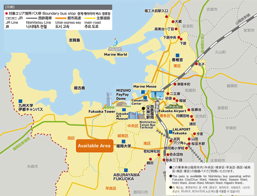 =========================================================== 📣 본 상품은 즉시 확정 상품이 아니며, 결제 완료 후 영업일 기준 24시간 이내 바우처가 발송됩니다. 주말 및 공휴일에는 바우처 발송이 진행되지 않으므로, 일정에 여유를 두고 구매해 주시기 바랍니다. 📣 본 상품은 예약 확정 후 변경 및 취소가 불가하오니, 구매 전 내용을 충분히 확인하신 후 신중하게 결제해 주시기 바랍니다. =========================================================== 1️⃣ 후쿠오카 시내 버스 1일권 자유승차권(그린패스) 🚌 후쿠오카 핵심 이동을 한 장으로 해결하는 스마트한 패스 1. 4회 이상 이용 시 확실한 가성비 - 교통비가 높은 일본에서도 한 장으로 합리적인 이동이 가능하며, 4번 이상 탑승 시 특히 효율적인 승차권입니다. 2. 후쿠오카 대표 명소를 자유롭게 연결 - 후쿠오카 타워, 텐진, 오호리 공원, 하카타역, 캐널시티 등 주요 관광지를 노선버스로 자유롭게 이동할 수 있습니다. 3. 공항 이동까지 가능한 편리한 무제한 승차권 - 후쿠오카 공항에서 하카타 이동 시에도 사용 가능해 여행 시작부터 마무리까지 편리하게 활용할 수 있습니다. 🅾️ 포함사항 - 옵션에 따른 승차권 ('후쿠오카 시내 1일 자유승차권' 또는 '후쿠오카 시내+다자이후 라이너 버스Tabito(旅人) 1일 자유승차권') ❎ 불포함사항 - 포함사항 외 일체, 기타 개인 경비 📲 사용 방법 - 구매시 보내드린 메일의 링크를 통해 이용 화면을 실행하고 이용 시작 버튼을 눌러 이용하시기 바랍니다. - 버스 승차 시 정리권(번호표)을 수령해 주세요. - 하차 시에는 정리권을 요금함에 넣고, 버스 기사에게 스마트폰의 승차권 화면을 제시하시면 이용 가능합니다. ※ 하차 시 승무원에게 스마트폰 화면을 제시해야 하므로, 배터리가 꺼지지 않도록 준비해 주세요. ※ 웹 화면 실행이 필요하므로, 와이파이 접속 등 네트워크 환경을 사전에 확인해 주시기 바랍니다. ⚠️ 유의사항 - 일행과 별도로 이용하거나 1일 이상 이용하실 경우, 인원별로 각각 1장씩 구매해 주세요. - 텐진 버스터미널, 하카타 버스터미널, 후쿠오카 공항 국제선 버스터미널에서는 환불이 불가하며, 환불은 구입처를 통해서만 신청 가능합니다. - 1일 자유승차권 이용 시, 후쿠오카 공항 국제선 터미널에서 숙박 호텔까지 짐 배송 할인 서비스를 이용하실 수 있습니다. 자세한 내용은 승차권 구매 후 이메일로 발송되는 바우처 참고해 주세요. (https://delibag.jp/ota-smart-check-in/) 👶 어린이 · 유아 이용 안내 - 본 승차권 구매 시, 성인 1명당 어린이 1명 무료 동반 탑승이 가능합니다. - 유아는 성인 1명당 최대 2명까지 무료로 탑승 가능합니다. - 단, 성인 1명당 3번째 유아부터는 어린이 승차권 구매가 필요합니다. - 유아가 단독으로 탑승하는 경우에도 어린이 승차권 구매가 필요합니다. ※ 유아 : 6세 미만 / 어린이 : 6세 이상 12세 미만 (초등학생) 🔗 후쿠오카 시내 버스 자유승차권 공식 웹사이트 (https://www.nishitetsu.jp/kr/1daypass/) ✨ 바우처 유효기간 : 구입일부터 3개월 =========================================================== 2️⃣ 후쿠오카 마린월드 우미노나카미치 수족관 입장권 🐠 규슈의 바다를 한눈에 담은 후쿠오카 대표 수족관 1. 약 350종·3만 마리 해양 생물 전시 - 규슈 바다를 테마로 한 다양한 해양 생물들을 가까이에서 만나볼 수 있습니다. 2. 2017년 리뉴얼 오픈, 세계 최대급 대수조 - 압도적인 규모의 메인 수조에서 펼쳐지는 생생한 해양 풍경을 감상해 보세요. 3. 돌고래·바다사자 쇼 등 다채로운 프로그램 - 가족, 연인 모두 즐길 수 있는 인기 퍼포먼스와 체험형 프로그램이 준비되어 있습니다. 🅾️ 포함사항 - 마린월드 우미노나카미치 입장 ❎ 불포함사항 - 포함사항 외 일체, 기타 개인 경비 📲 사용 방법 1) 구매 시 발송된 바우처 이메일 내 링크를 열어주세요. 2) 링크 접속 후 [이용] 버튼을 클릭해 주세요. 3) 발급된 디지털 입장권을 현지 스태프에게 제시해 주세요. ※ 입장 시, 스마트폰의 웹 화면 제시가 필요합니다. 사전에 네트워크 환경을 확인하여 주시기 바랍니다. ⚠️ 유의사항 - 시설 혼잡 상황에 따라 입장 또는 이용이 제한될 수 있습니다. - 쿠폰, 우대권, 할인권 등은 본 티켓과 중복 사용이 불가합니다. - 시즌에 따라 일부 시설 및 이벤트 공간은 운영되지 않을 수 있습니다. - 영업시간은 요일별로 상이할 수 있으므로, 이용 전 공식 운영시간 및 정기 휴일을 직접 확인해 주시기 바랍니다. - 시설 휴관으로 인해 이용이 불가한 경우에도 취소는 불가하오니, 이 점 양해 부탁드립니다. - 예약 완료 후 변경 및 취소가 불가능합니다. 👶 어린이 · 유아 이용 안내 - 만 3세 미만은 티켓 구매가 필요하지 않습니다. 🚫 입장 제한 아래에 해당하는 경우, 입장이 제한될 수 있습니다. - 음주로 인해 정상적인 관람이 어려운 경우 - 참여 시 증상이 악화될 우려가 있는 질환을 보유한 경우 - 폭력 단체 관계자 - 만취 상태인 경우 🔗 후쿠오카 마린월드 공식 웹사이트 (https://marine-world.jp/for-foreigners/ko/) ✨ 바우처 유효기간 : 구입일부터 3개월