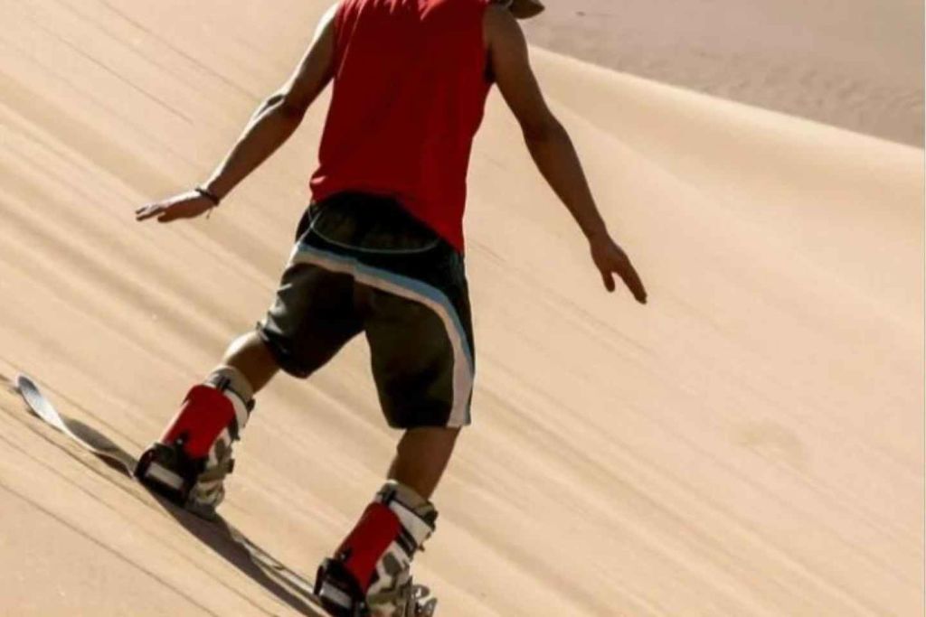 샌드보딩 재미: 초보자부터 전문가까지 누구나 쉽게 모래 언덕을 미끄러져 내려갈 수 있습니다.
