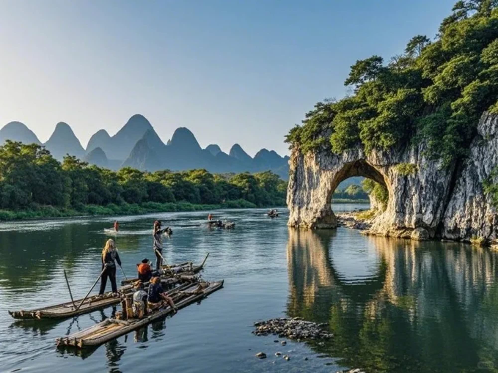 🛶 흥평 이강: 맑은 강물이 기이한 봉우리를 비추고, 수묵화 속에 있는 듯 "천하제일"의 산수 정수를 만끽하세요. 💎 은자암: 오색 조명이 기이한 종유석을 비추고, 마치 몽환적인 지하 궁전처럼 자연의 놀라운 솜씨를 숨기고 있습니다. 🚣♂️ 우롱강 2인 뗏목: 잔잔한 수면 위를 유유히 떠다니며 산들바람을 맞으며 한가로운 시간을 만끽하세요. 🐘 상비산 인증샷: 코끼리가 강에서 물을 마시는 듯한 기이한 조형은 계림에서 가장 상징적인 경치입니다.