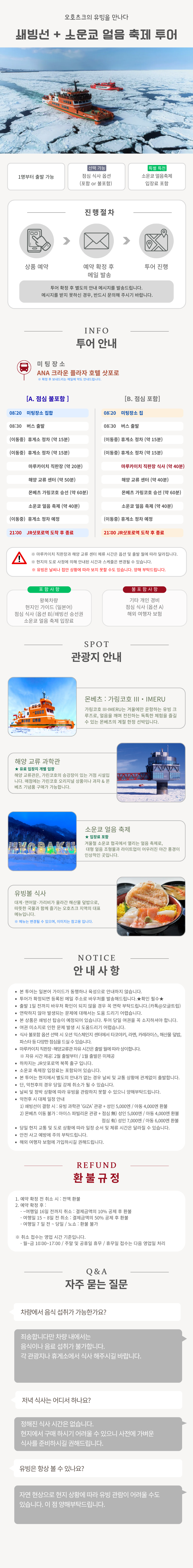 이동은 전용 차량으로 진행되며, 옵션 선택 시 점심 식사도 포함되어 겨울 홋카이도를 편하게 즐기기 좋은 일정입니다.