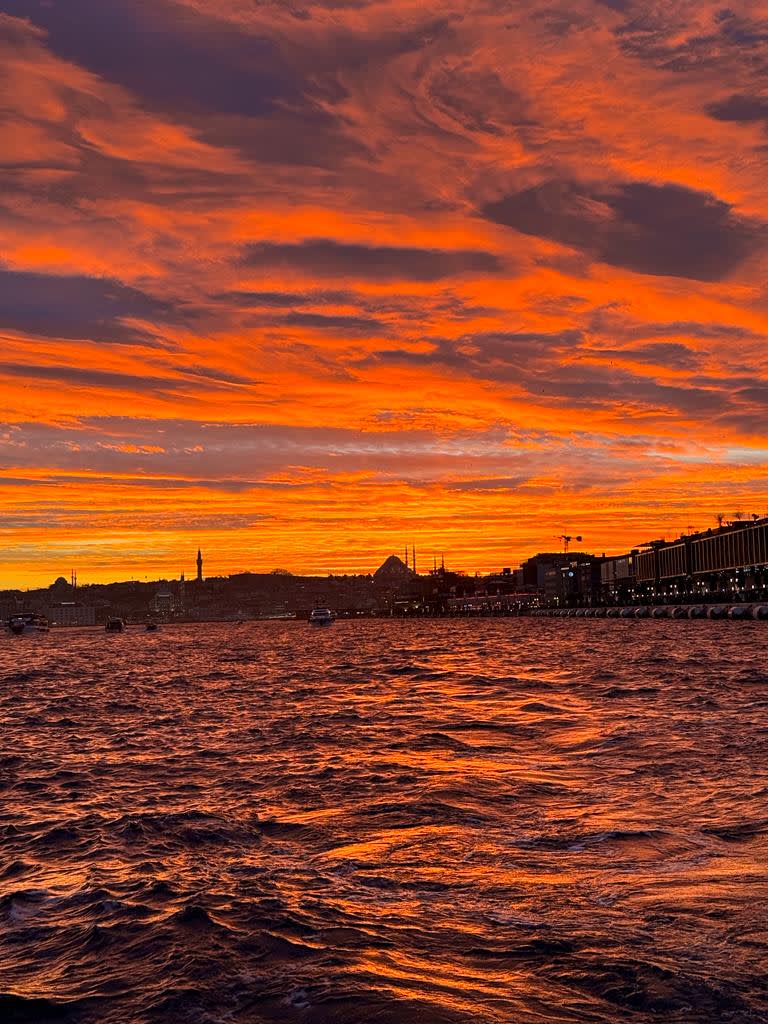 보스포러스 해협의 가장 매혹적인 순간을 만끽할 수 있는 선셋 크루즈에 참여하세요. 황금빛과 붉은빛으로 물드는 석양 아래, 역사적인 반도의 아름다운 실루엣과 처녀의 탑, 보스포러스 다리가 어우러져 이스탄불 최고의 절경을 선사합니다.