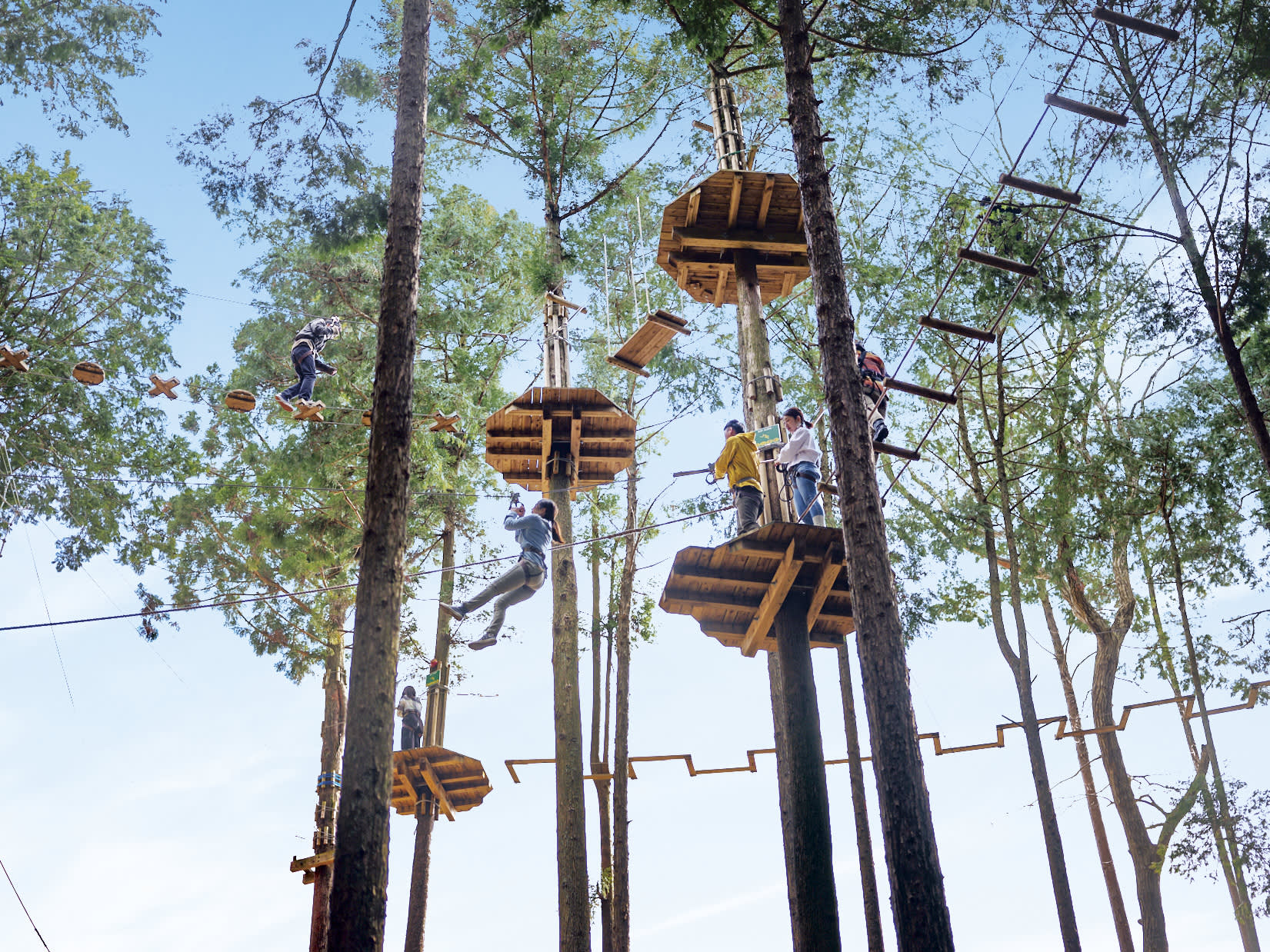 * Forest Adventure의 고가 플랫폼을 걷는 신비하고 차분한 분위기에 빠져보세요.