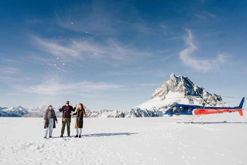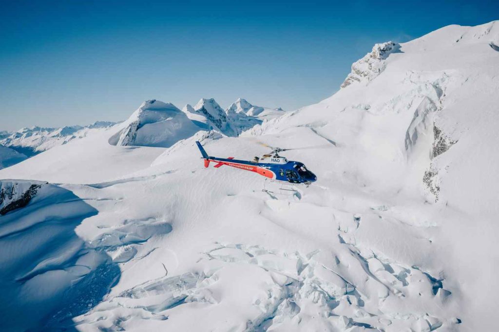 다음으로는 국립공원에서 사람의 손길이 닿지 않은 광활한 원시림과 고대 빙하 빙하를 만나보세요. 마운트 어스파이어링 국립공원의 눈 덮인 봉우리 사이에 착륙해 보세요. 착륙 후에는 퀸즈타운으로 돌아가기 전에 사진을 찍을 수 있는 기회를 놓치지 마세요.