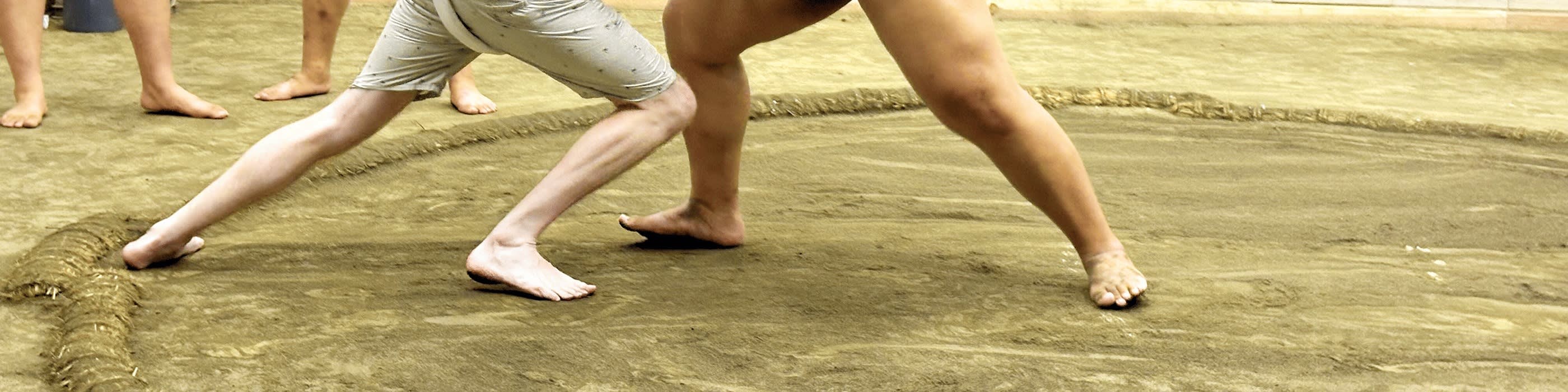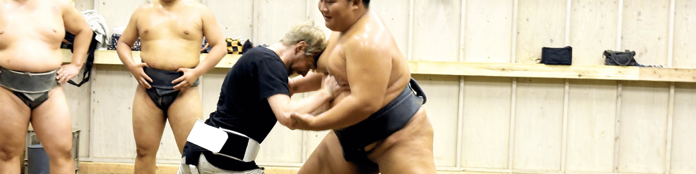 * 스모 선수들이 기술을 연마하는 강렬한 스모 훈련을 관찰하세요.