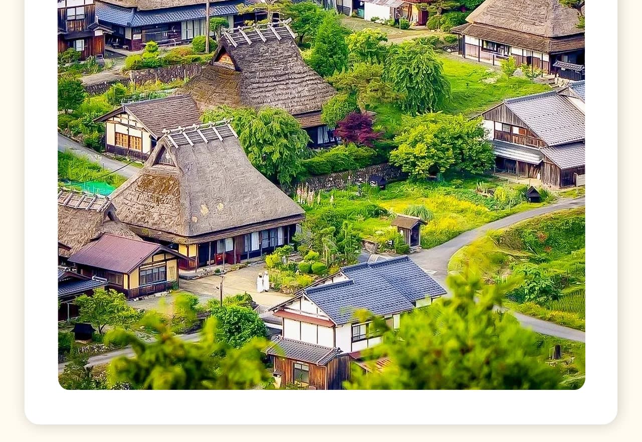 * 시라카와고의 고대 마을은 마치 미야자키 하야오의 동화 세계로 들어가는 듯합니다.