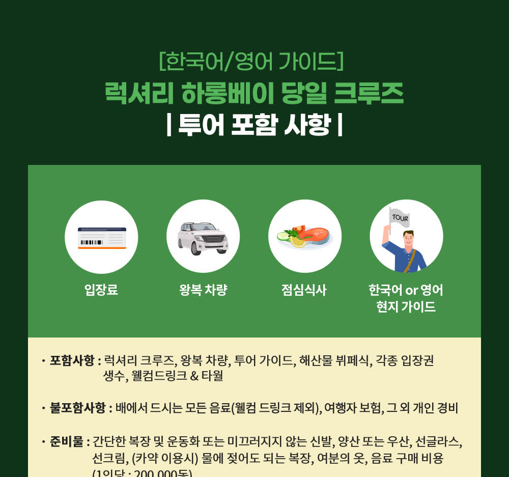 ▶하롱베이 선착장 출발 (차량 불포함) - 이용요건 * 만 10세 이상은 성인과 동일한 요금이 적용됩니다.