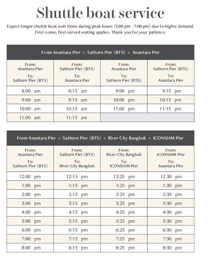BTS 사판탁신 (Saphan Taksin) 역에서 내리신 후 사톤 선착장 (Sathorn Pier)에서 아난타라 리버사이드 호텔의 무료 셔틀 보트를 타시면 돼요.
