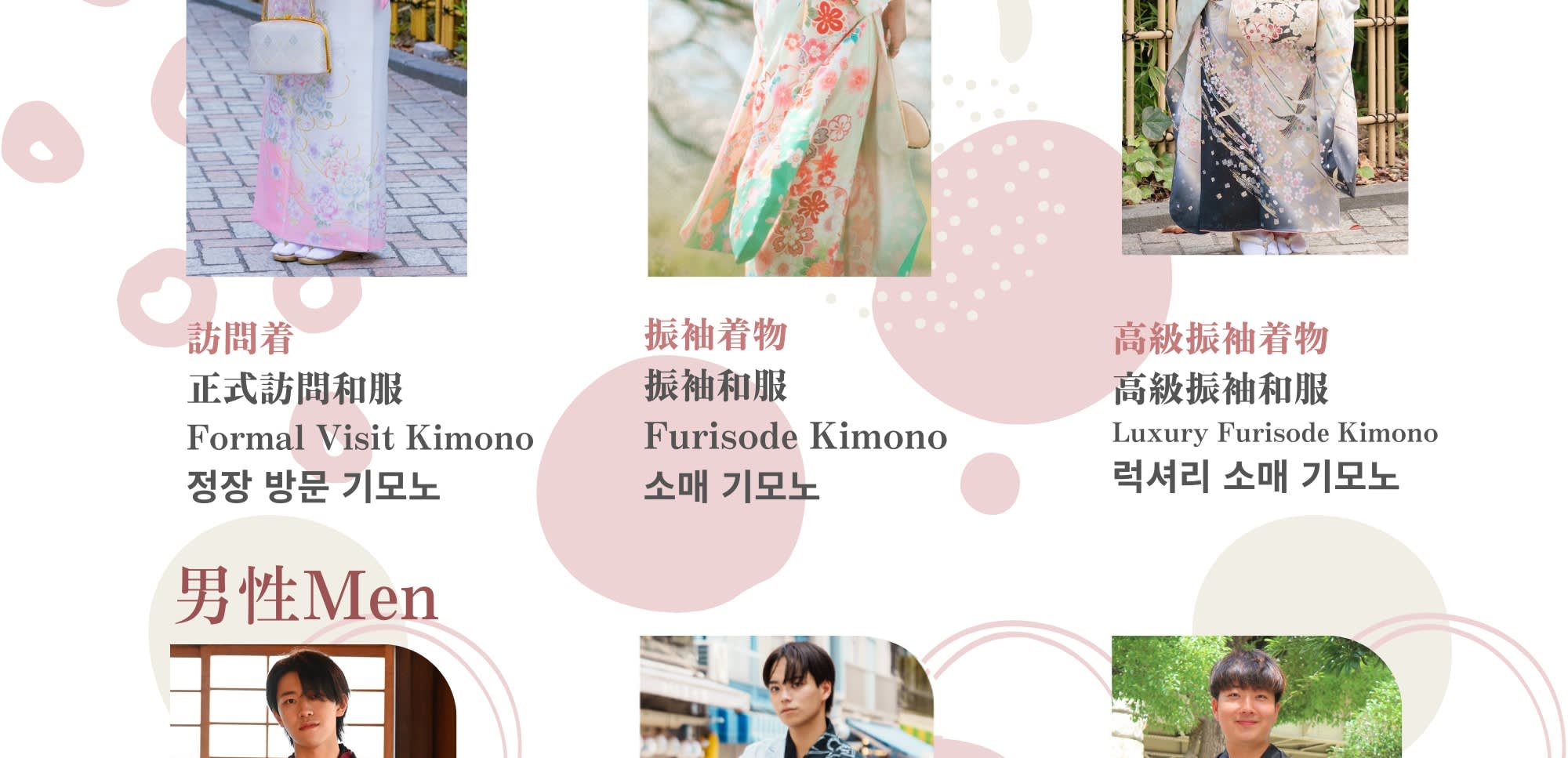 ▶여성|방문복 - 이용요건 * 신장 140cm 이상 아동은 성인과 동일한 요금이 적용됩니다. * 참여자의 신장은 최소 140cm이어야 합니다. - 추가정보 * 몸이 불편하신 분도 참가하실 수 있지만, 기모노를 입혀드리기 위해 2~3분 정도 서 계실 수 있어야 합니다. * 매장 내에서 짐을 보관해 드리지만, 귀중품은 반드시 소지하시기 바랍니다. * 예약 시간에 30분 이상 늦으신 경우, 변경 비용으로 500엔(1인당)이 발생합니다. 현지에서 지불해 주십시오. * 기모노 분실, 오손, 파손 시 20,000엔의 추가 요금이 부과됩니다.