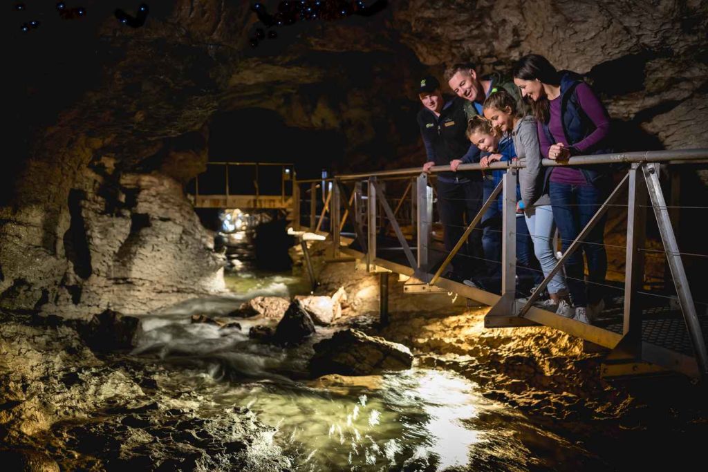 소용돌이와 지하 폭포가 있는 석회암 통로를 구경하세요