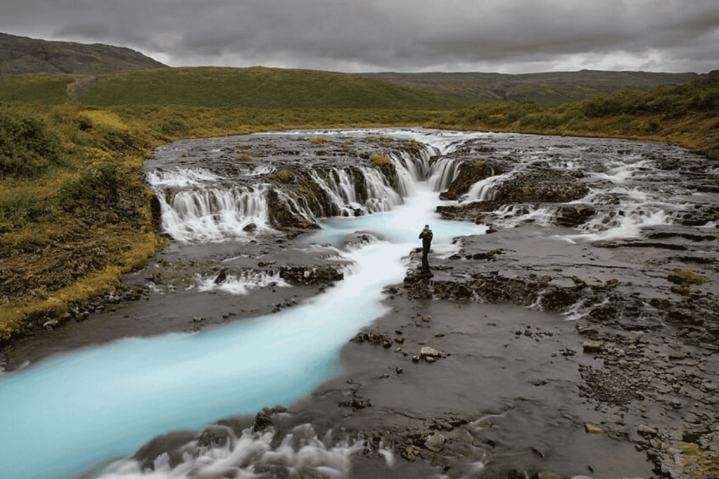 두 번째로 방문할 곳은 아이슬란드의 야생 속에 숨겨진 보석 같은 브라르포스입니다. '블루 워터폴'로 알려진 이 폭포는 자연의 신비로움과 위대함을 상징합니다.