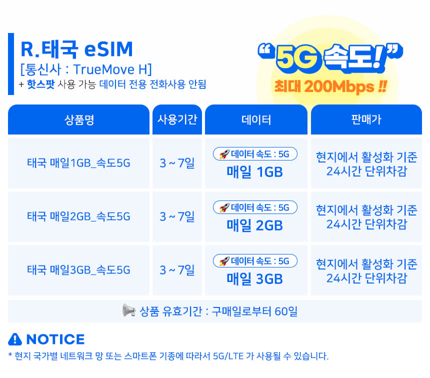 방콕, 치앙마이, 푸켓에서 자유롭게 5G를 즐겨보세요. 말톡 태국이심 eSIM은 매일 1GB/2GB/3GB의 데이터 제공으로 언제 어디서나 빠른 인터넷을 보장합니다. 여행 중 끊김없이 소통하며 특별한 순간을 만끽하세요.